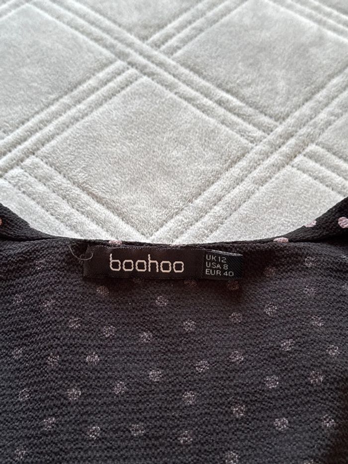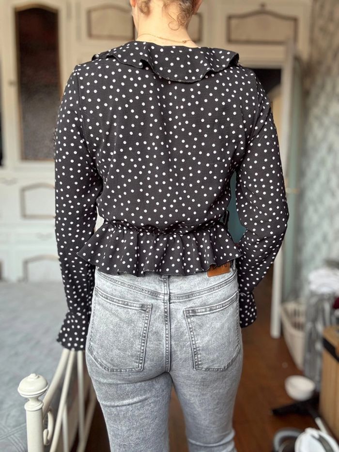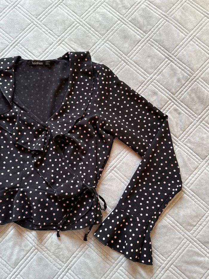 Blouse légère à manches longues à pois noir avec volants - taille L - Boohoo - très bon état - photo numéro 3