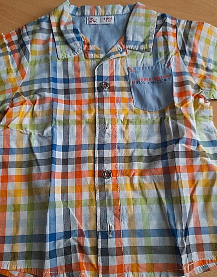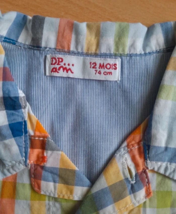 Chemise à carreaux manches courtes multicolore dpam taille 12mois #Sally0851vetementenfant #Sally0851e1ans