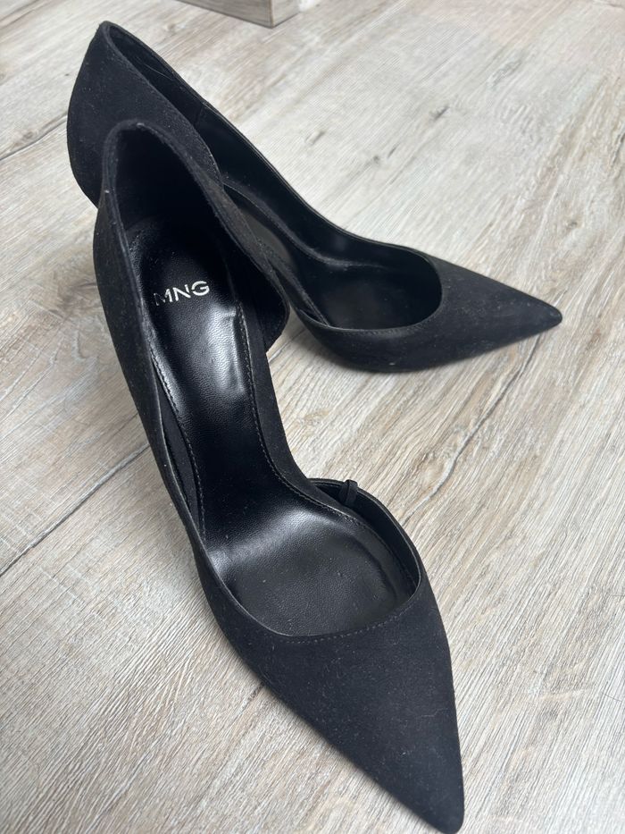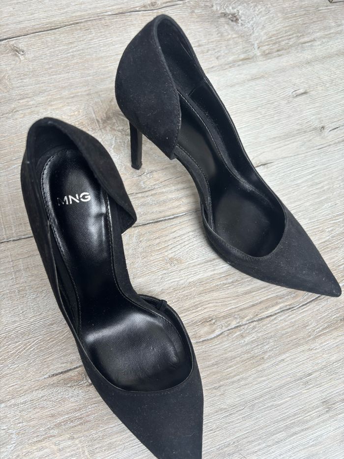 Jolies sandales à talons Mango – Taille 36 Vends une paire de talons élégants de la marque Mango, taille 36. Portés quelques fois. Couleur : noir Talon : confortable et stable. Parfaits pour une occasion spéciale ou pour ajouter une touche chic à une tenue du quotidien. N’hésitez pas à me contacter pour plus de photos ou d’infos ! Envoi rapide et soigné 📦