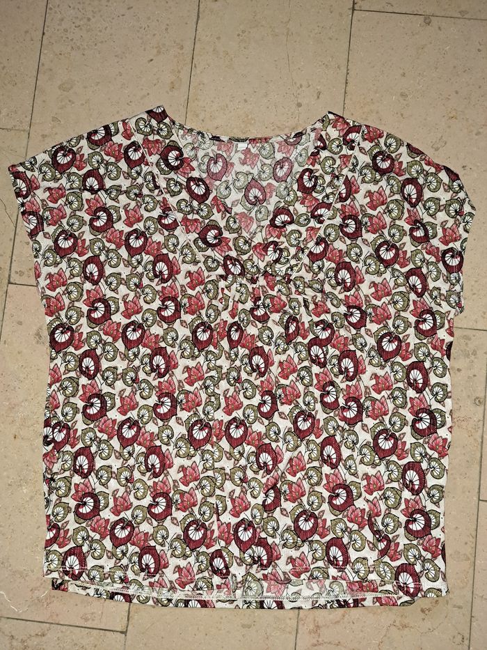 T-shirt femme Taille 3 Couleur rouge Motifs feuilles Col V État impeccable