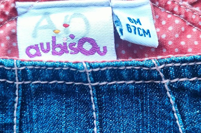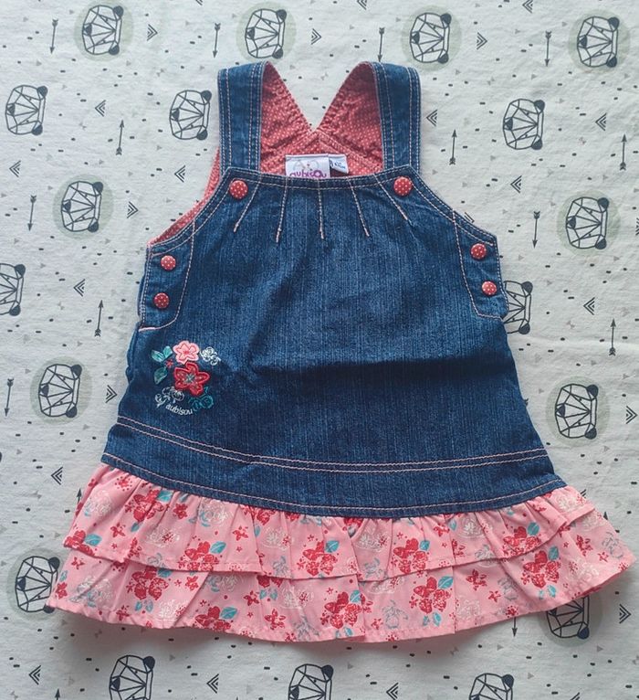 Robe en jean avec possibilité de régler les bretelles en très bon état de la marque Aubisou pour fille taille 6 mois. #neezia33240robefille6mois