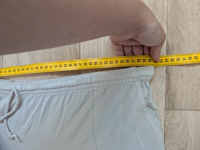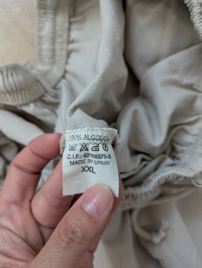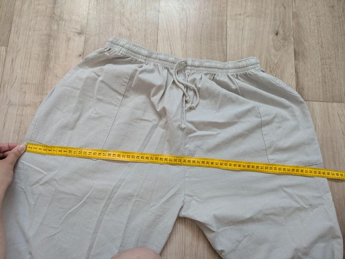 Excellent état - Conforme aux photos Taille élastique Dernière photo : largeur élastique tendue. Grosses réductions sur les lots et beaucoup d'articles dans mon dressing ! Profitez en ! 🤗😉 Dressing trié par taille -> #miladys44 Pour les autres tailles: voir la liste dans la description de mon profil, visitez mon dressing ou demandez moi 😉 #pantacourt #beige #creme #coton #été
