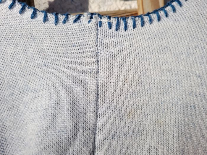 Superbe gilet sans manche style poncho/cape, blanc chiné bleu et motifs géométriques bleus, Orchestra, 10 ans, très bon état, une petite tache dans le dos ( cf dernière photo) Pour voir mes autres ventes en 10 ans : #10ansfillemooglou #orchestramooglou
