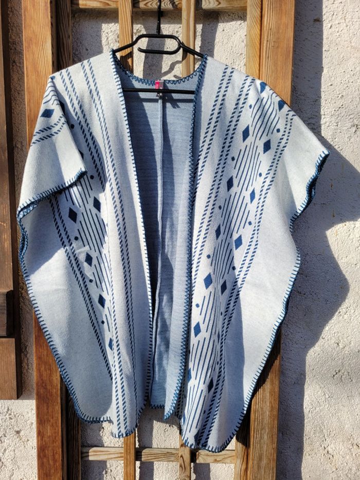 très beau gilet long poncho Orchestra, bleu et blanc, 10 ans - photo numéro 3