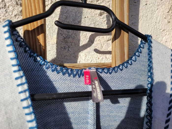 très beau gilet long poncho Orchestra, bleu et blanc, 10 ans - photo numéro 7