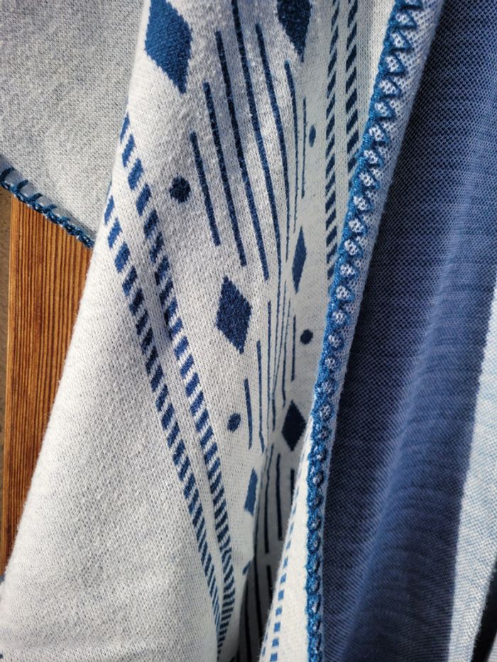 très beau gilet long poncho Orchestra, bleu et blanc, 10 ans - photo numéro 4