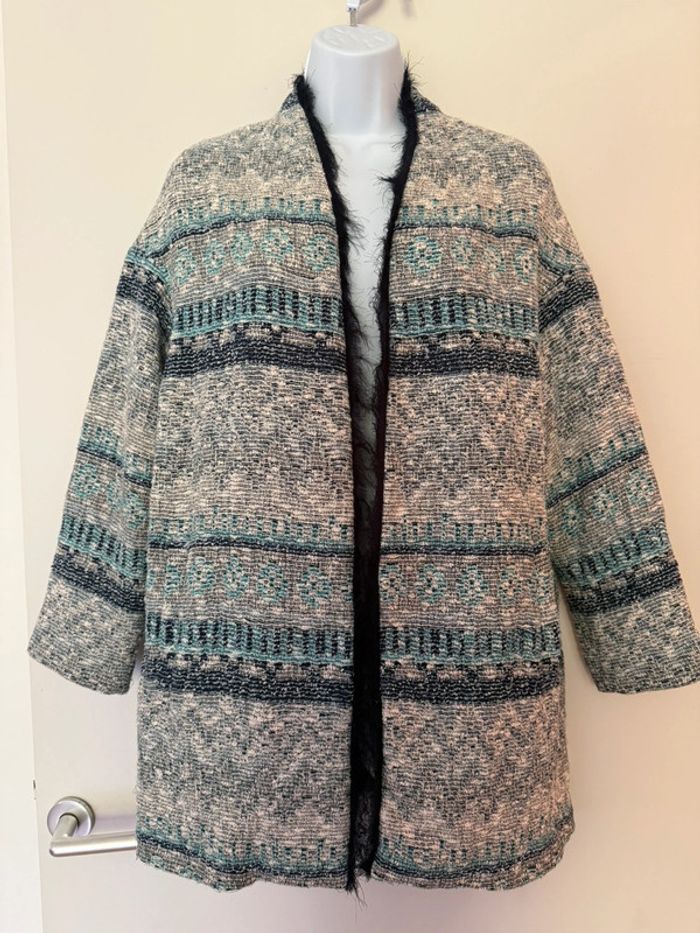 Veste mi longue bleu et blanche Zara - photo numéro 1