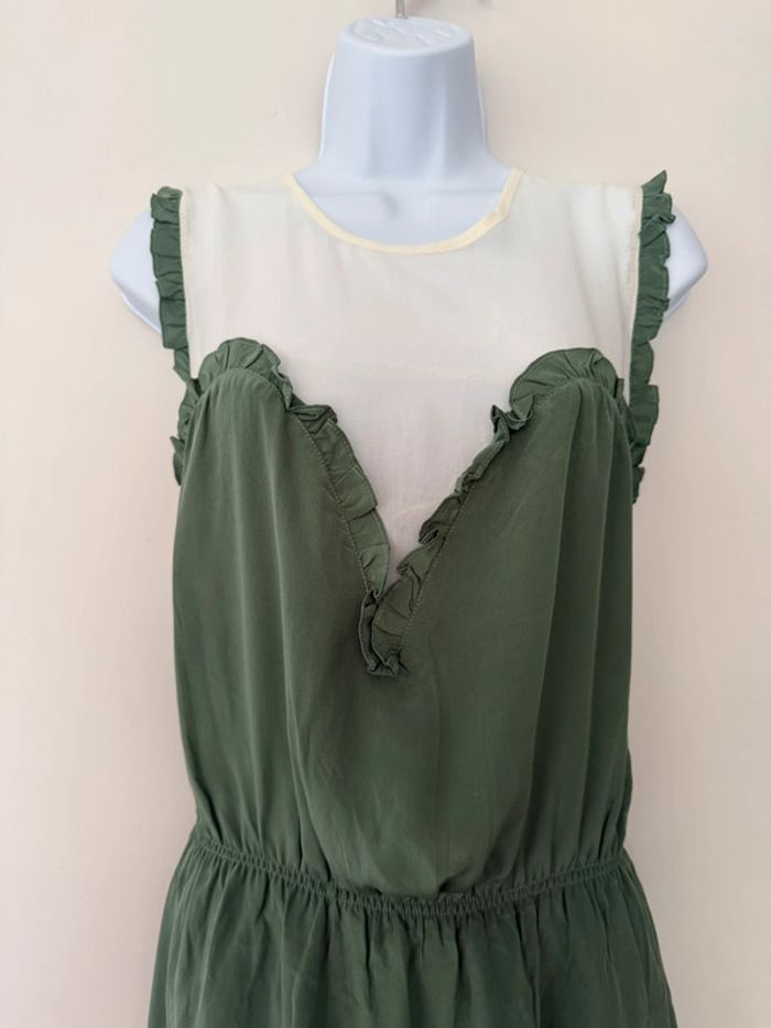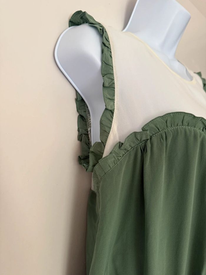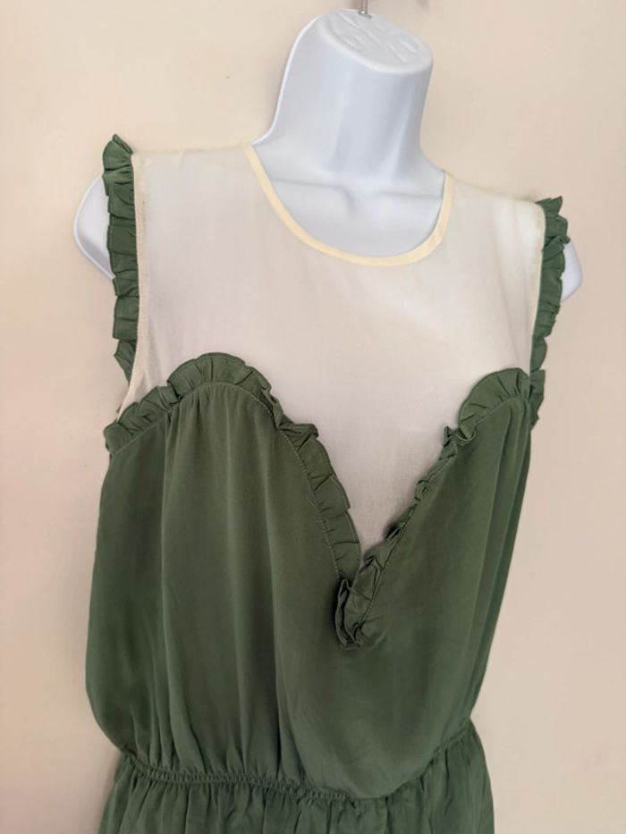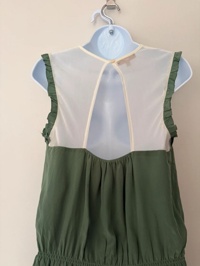 Robe habillée verte et blanche en soie Bel air - photo numéro 3