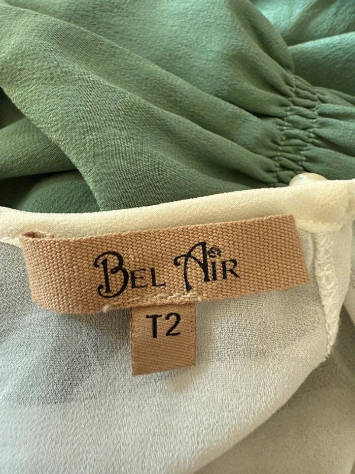 Robe habillée verte et blanche en soie Bel air - photo numéro 2