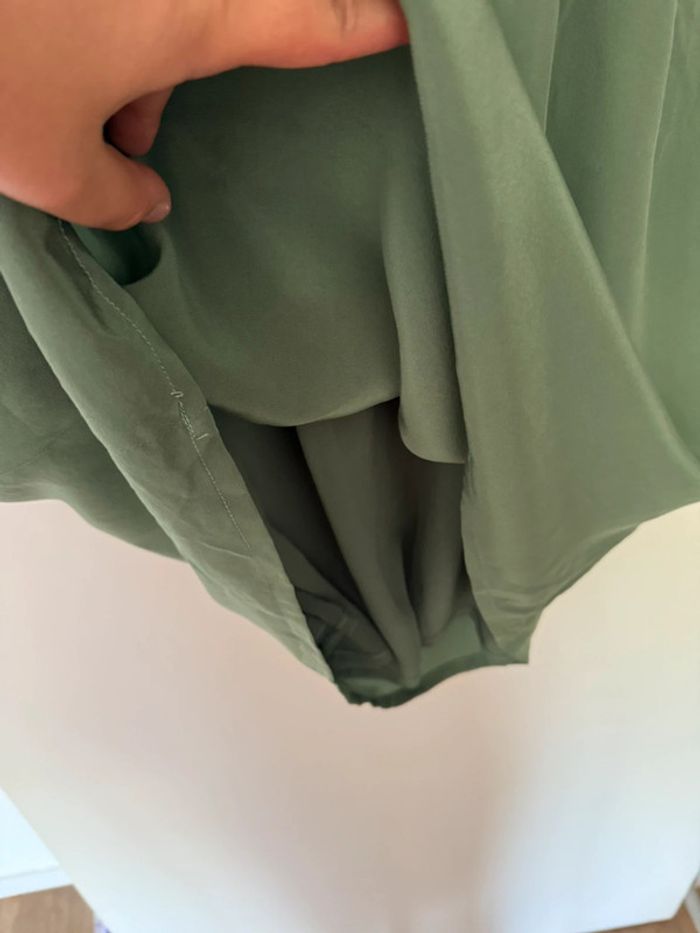 Robe habillée verte et blanche en soie Bel air - photo numéro 10