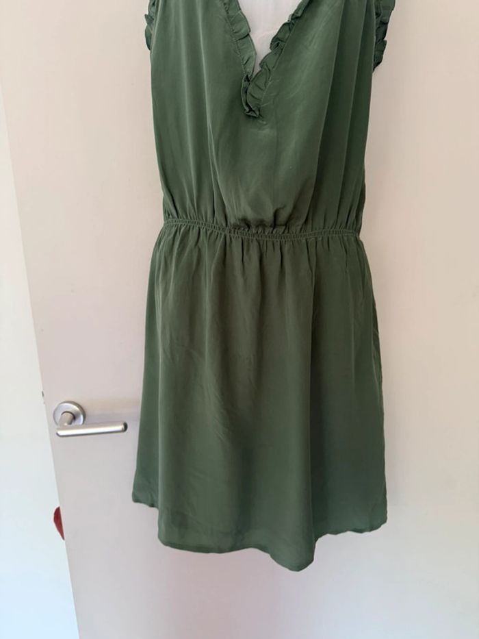 Robe habillée verte et blanche en soie Bel air - photo numéro 5