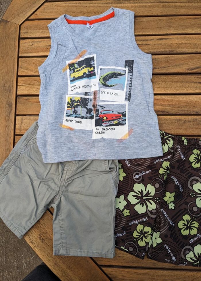 Lot composé de 2 bermudas et d'un tee-shirt. L'ensemble taille 2 ans même si le bermuda à fleurs est noté 18mois et le tee-shirt sans manche 92 cm. En TBE ! D’autres articles dispos et remise sur les lots activée ! #campap77vêtementbébé #campap77vêtementenfant