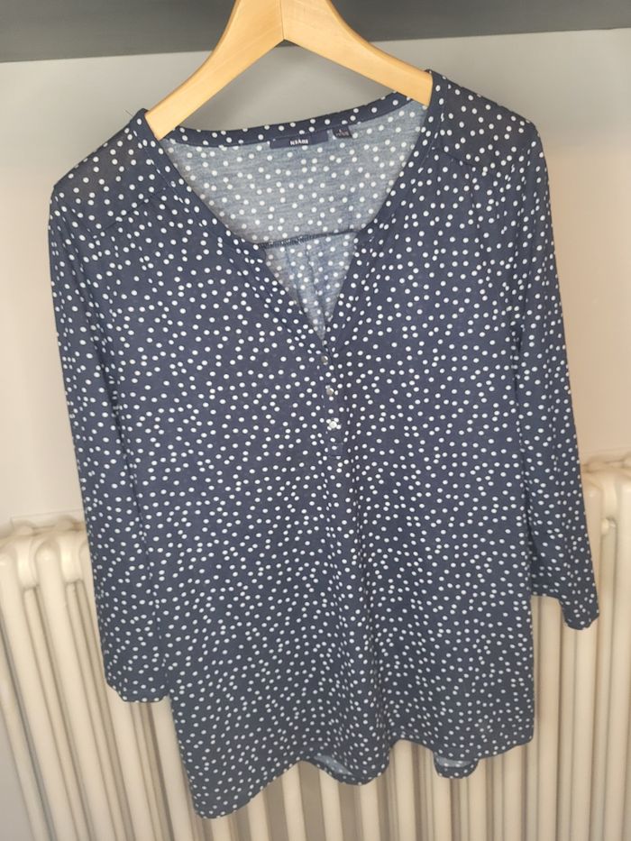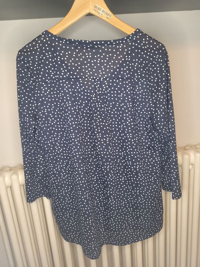 Chemise blouse à pois Bleu marine Manches 3/4 Taille 42-44 Dimensions à plat sous les aisselles : 51 cm Longueur totale de l'épaule au bas : 65 cm devant et 74 cm derrière Marque Kiabi Pas d'étiquette de composition Réductions activées sur les lots ↘️ ✅️ 🤑 #chemisesofi1804 #taille42sofi1804 #taille44sofi1804