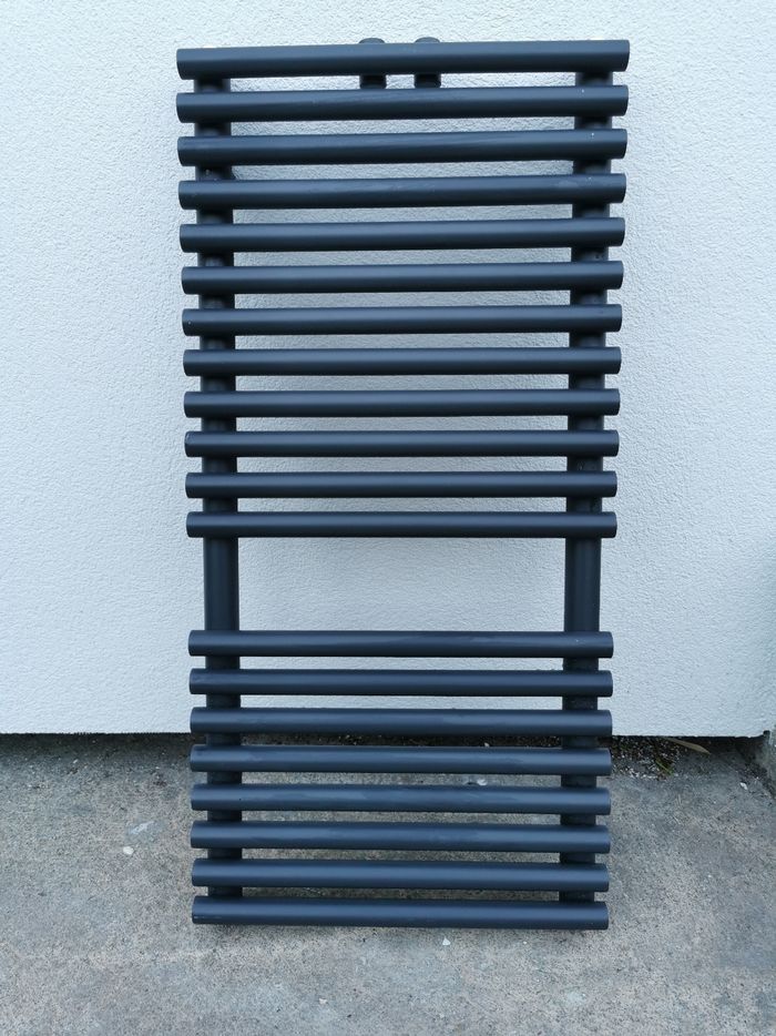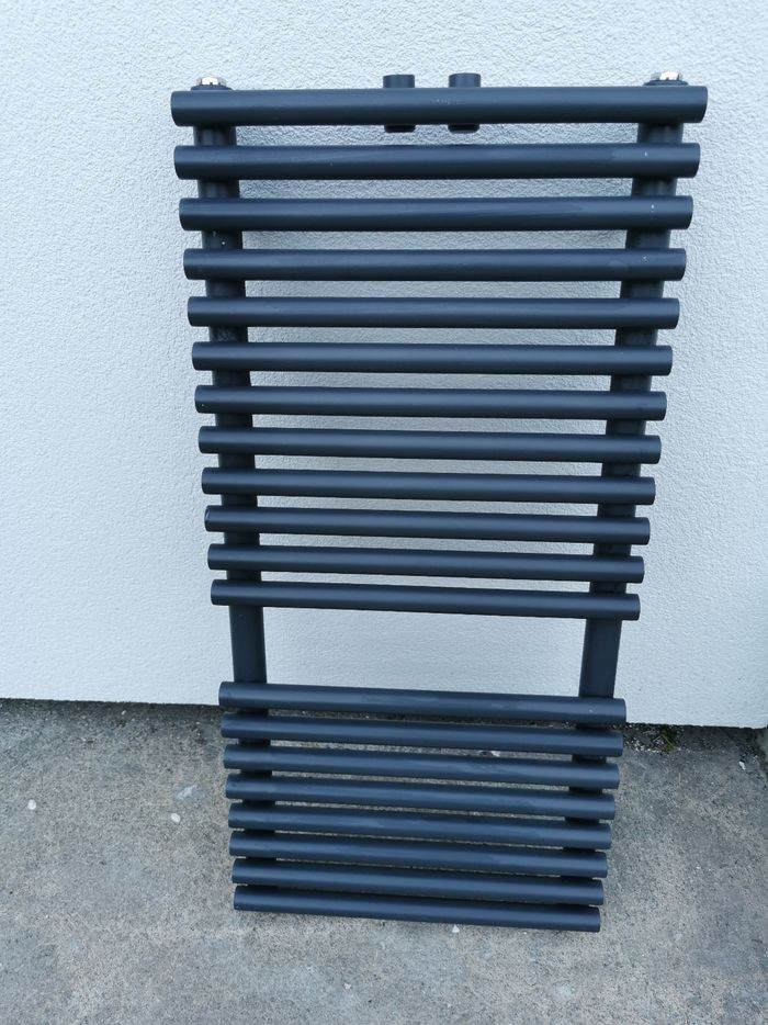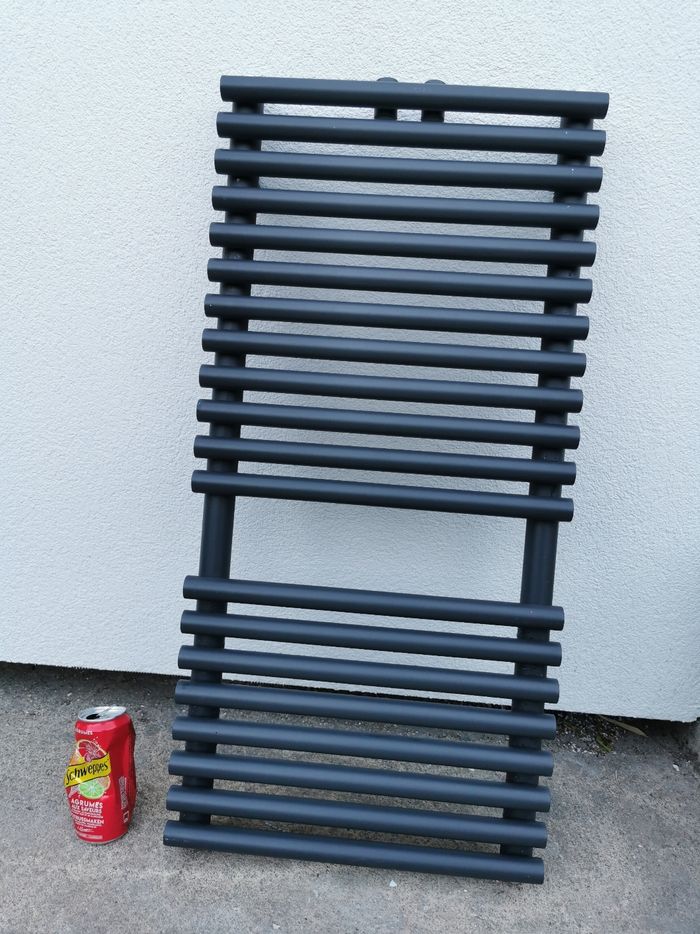 Radiateur à eau sèche serviettes en acier de bonne facture, gris anthracite. Neuf, Erreur de commande. testé une fois. Hauteur : 84 cm Largeur : 40 cm
