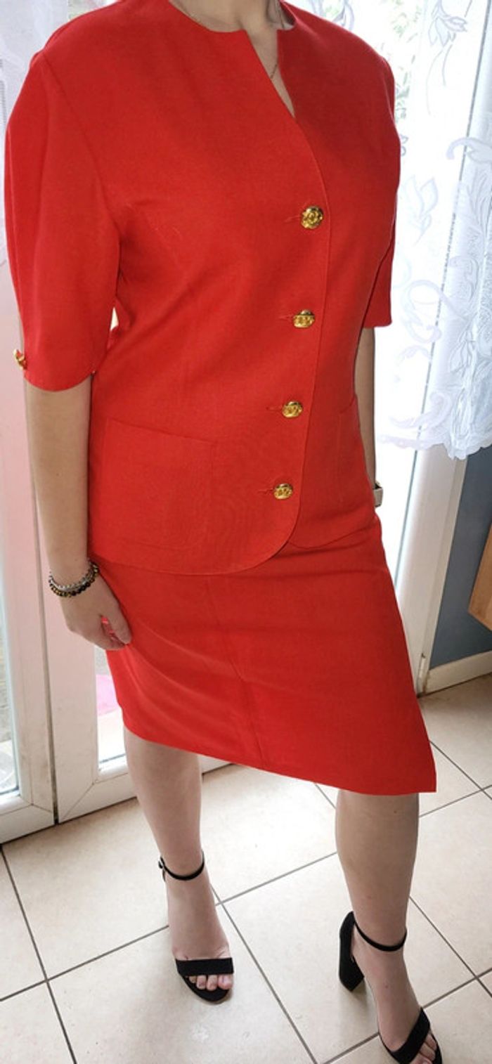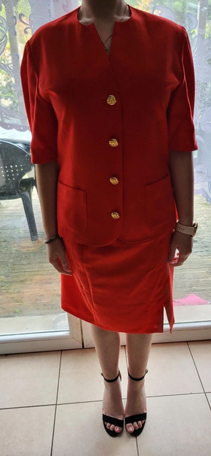 Ensemble tailleur rouge vintage Devernois Paris 38/40 - photo numéro 2