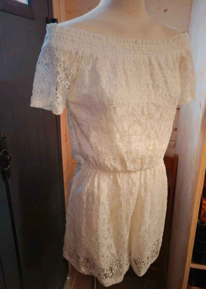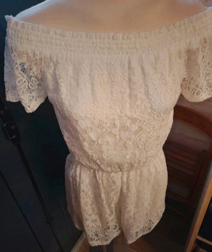 Combishort dentelle blanche, épaule dénudées. Très classe . De la marque hollister Plein d'autres vêtements à petits prix #A2life_taille36