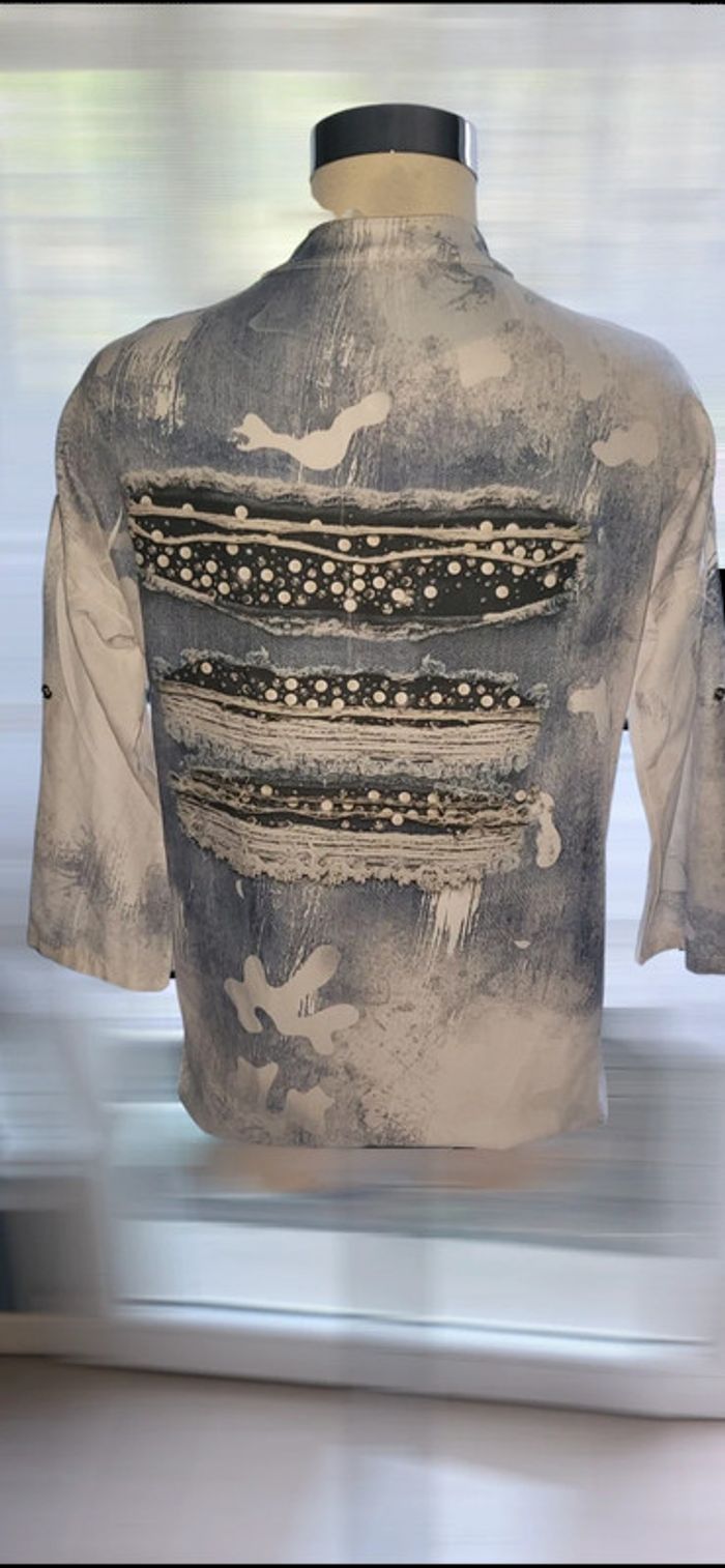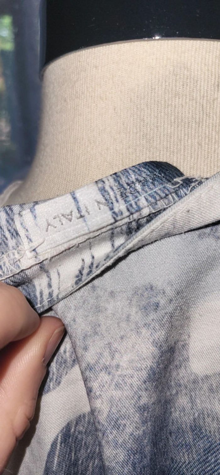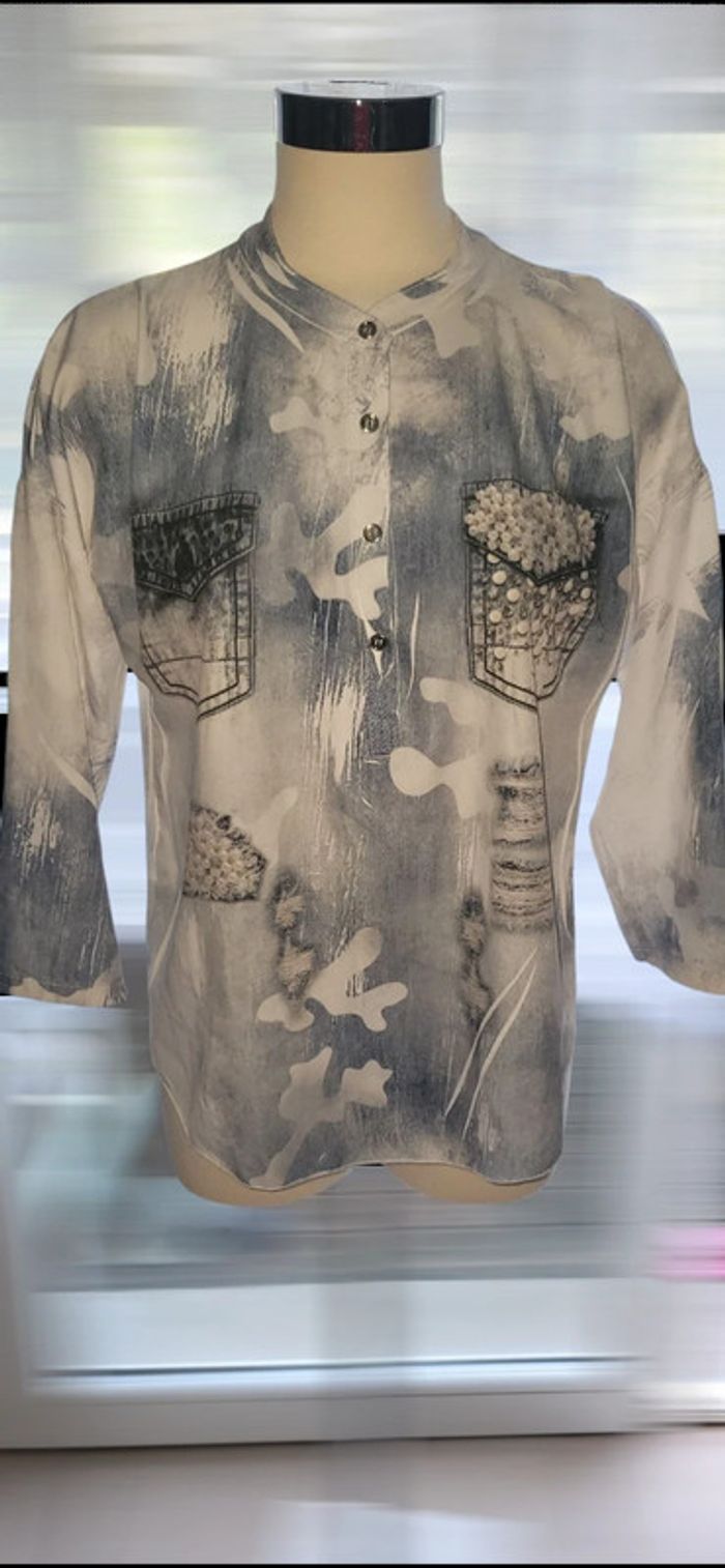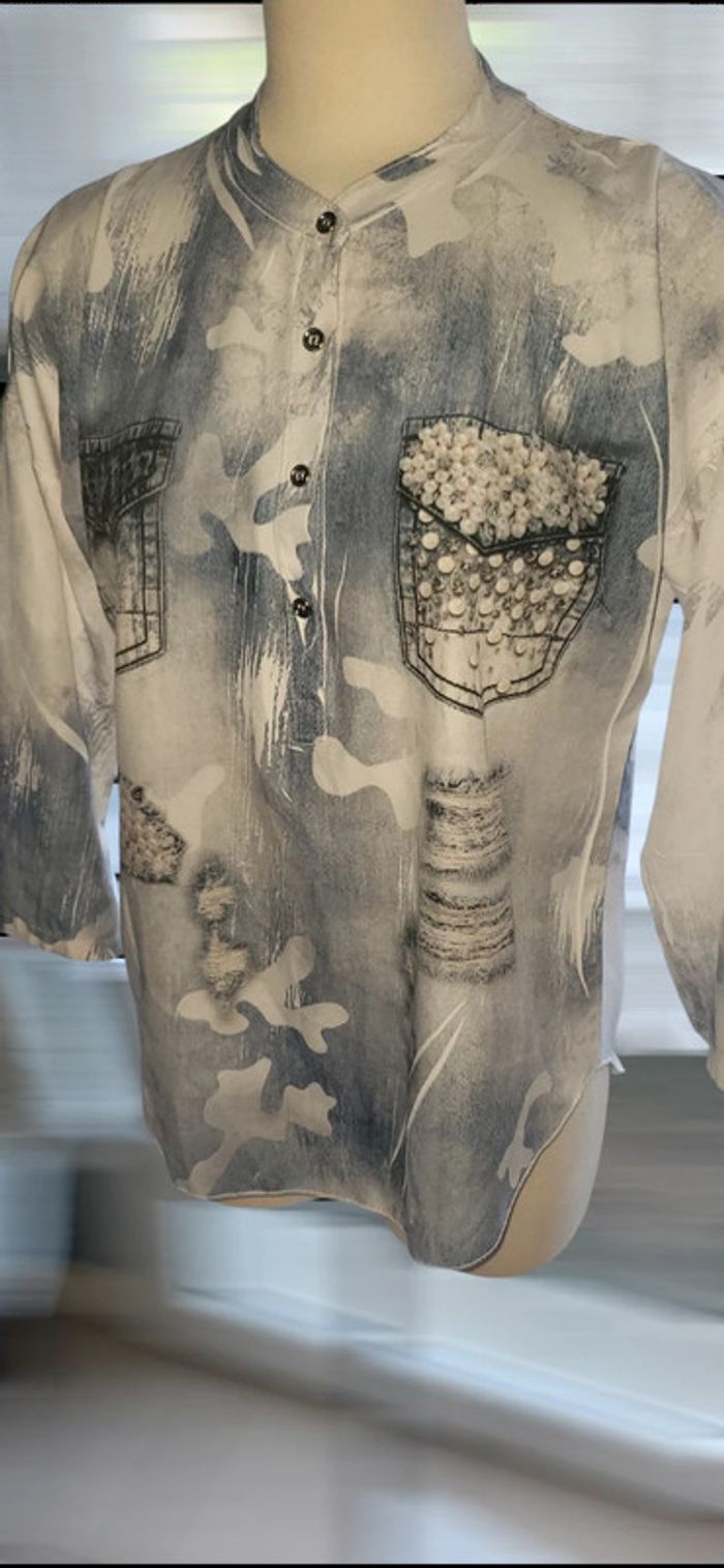**Description :** Ajoutez une touche artistique à votre garde-robe avec ce magnifique haut imitation chemise ! Son design asymétrique et son ouverture en forme de goutte d’eau au niveau du col lui confèrent une allure moderne et raffinée. Les motifs imitations chemise apportent une touche d’originalité, parfaite pour un look casual chic. Sa matière fluide et légère assure un confort optimal tout au long de la journée. **Détails :** 📌 Taille : 38/40 📌 État : Très bon état 📌 Marque : made in italy 📩 N’hésitez pas à créer un lot pleins d'autres vêtements à petits prix #a2life_taille40 #a2life_taille38