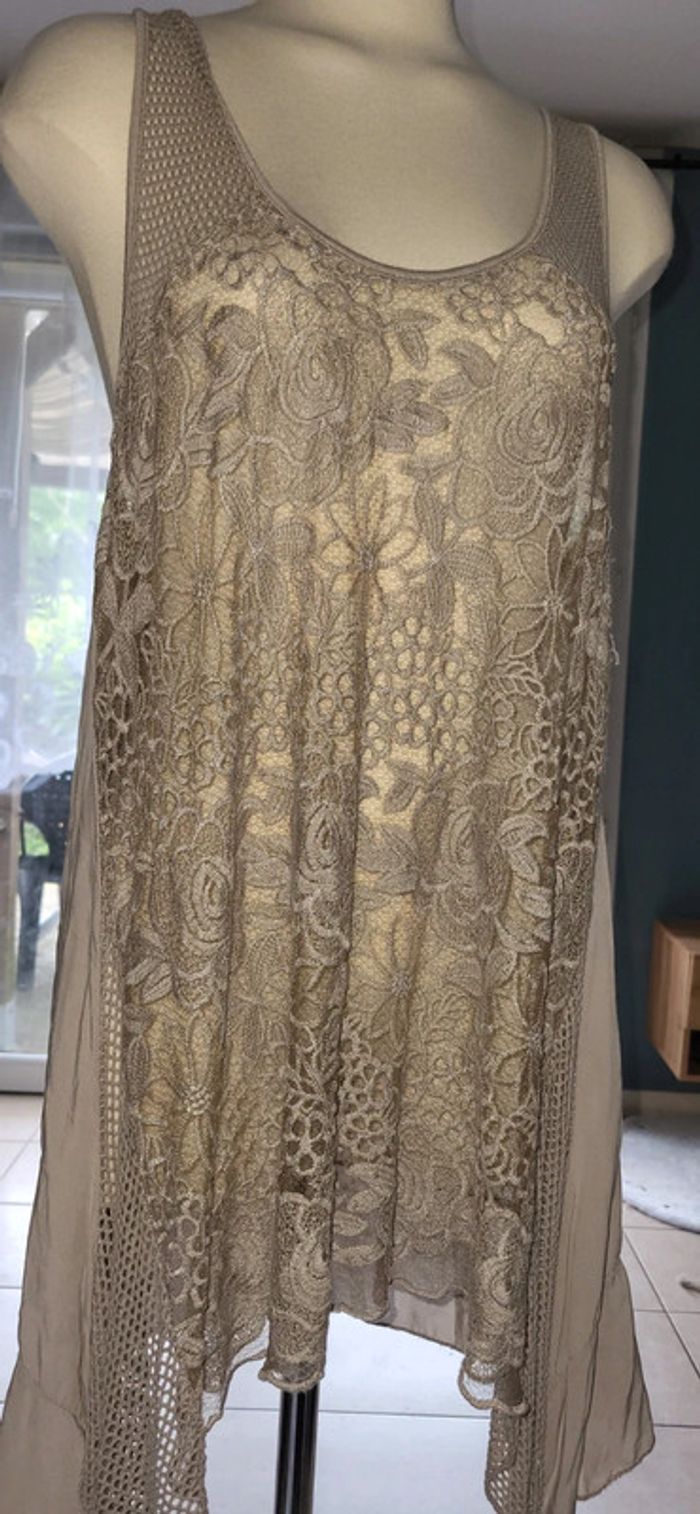 Top tunique beige en dentelle - style bohème chic - photo numéro 1