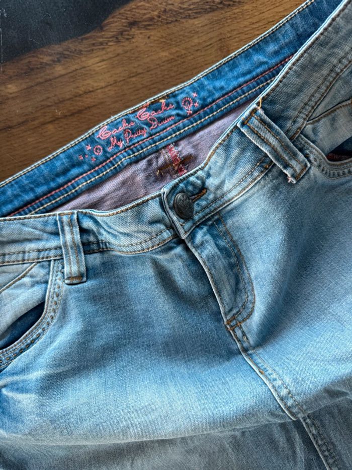 Jupe jeans T.42 Ourlet rose