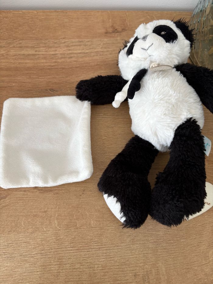 Doudou mouchoir  peluche mon p’tit panda blanc et noir - photo numéro 2