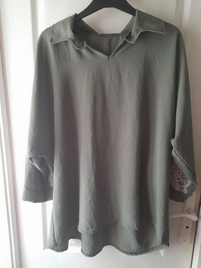 Blouse kaki dos dentelle blanche - photo numéro 1