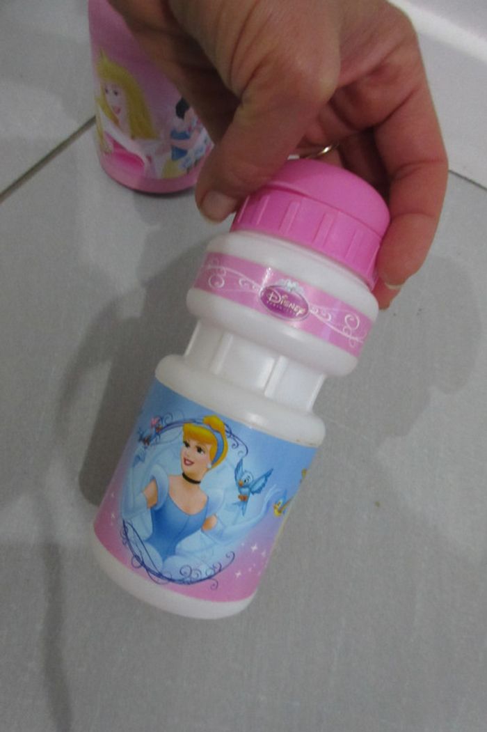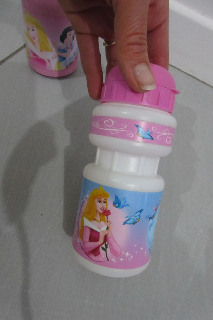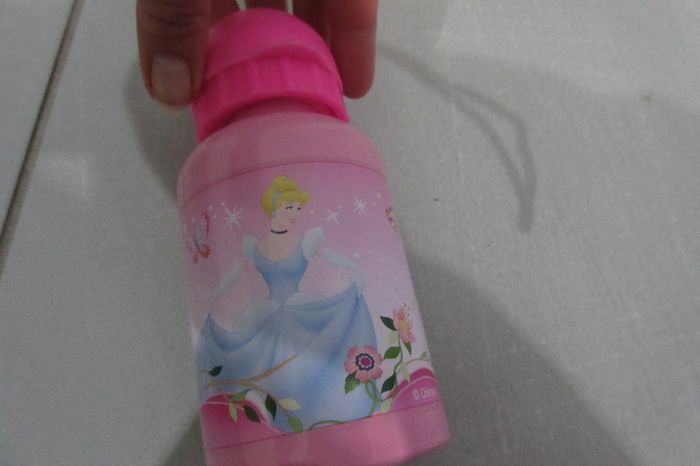 deux petites gourdes princesses Disney, une en plastique l'autre en métal (un peu cabossée) #flodolphy_accessoiresenfants