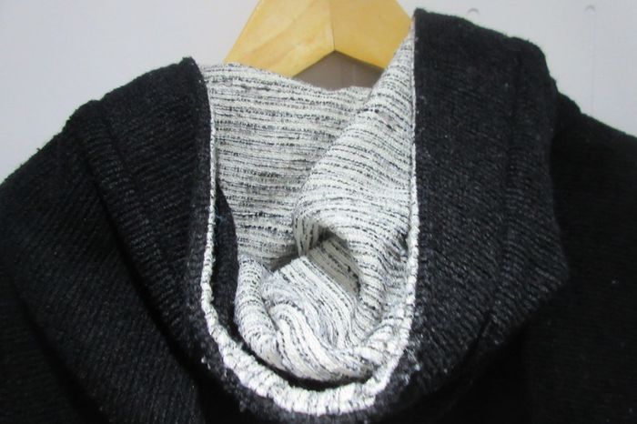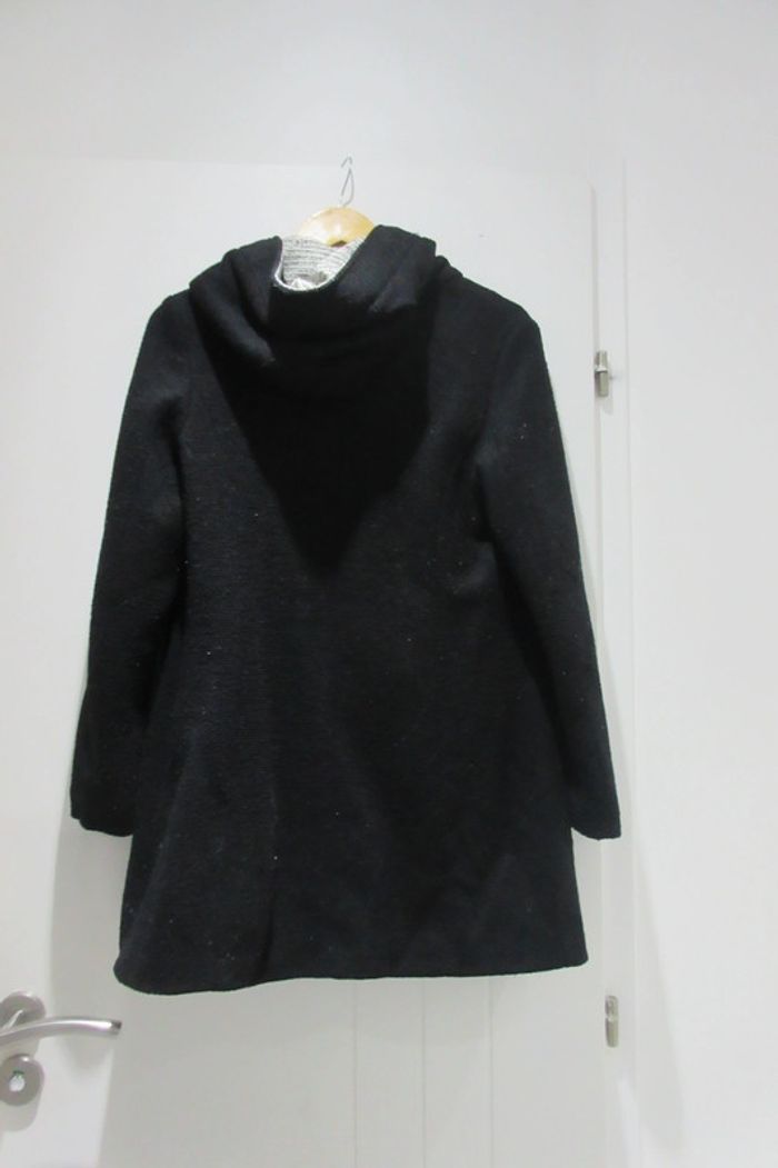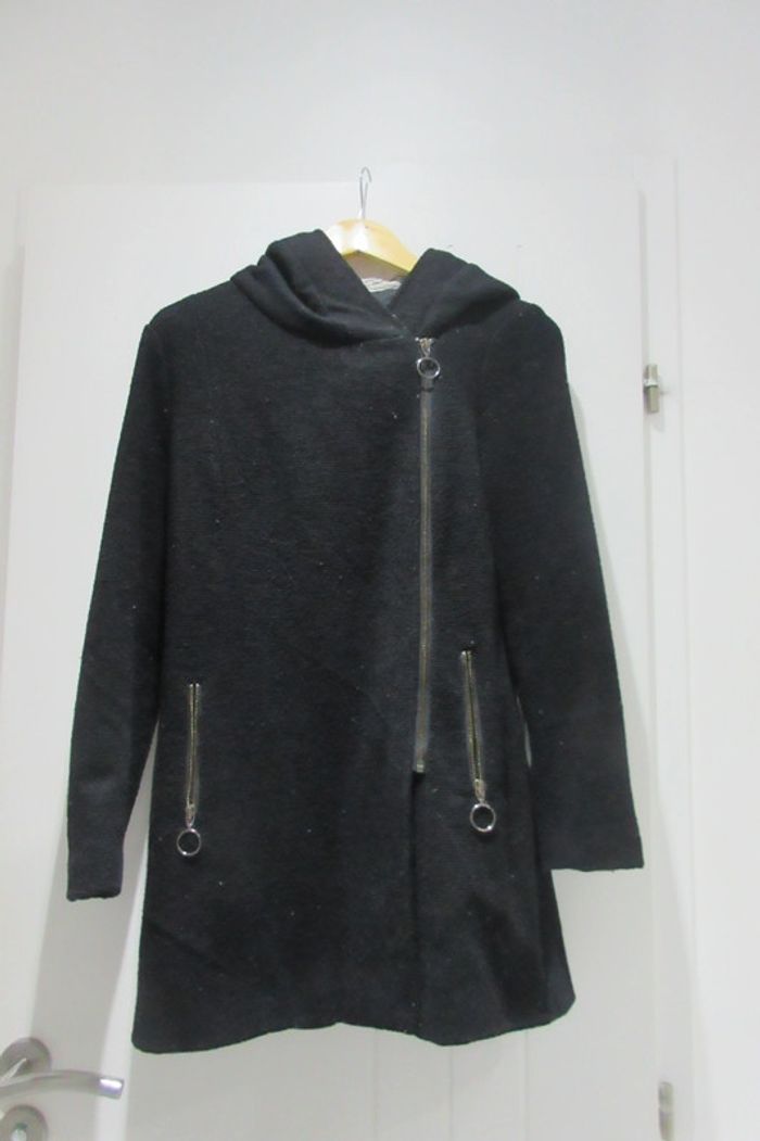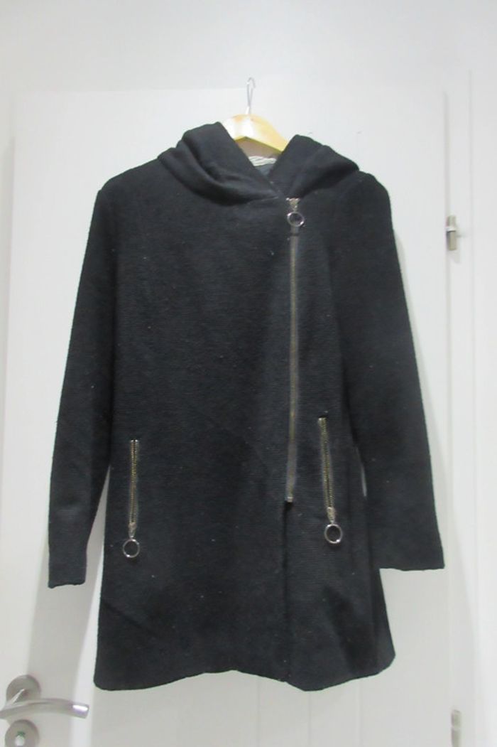 manteau noir à capuche gris, fermeture asymétrique, taille 38 Cache Cache #flodolphy_taille38
