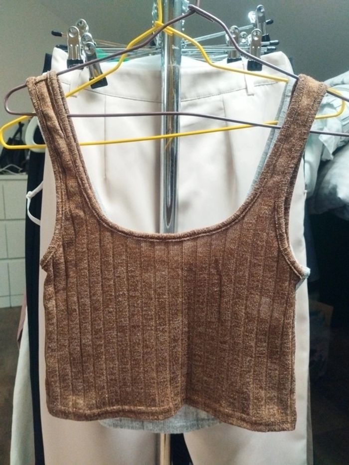 Top court, crop top côtelé marron Lefties taille S - photo numéro 2
