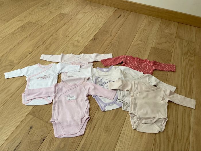 Lot de 7 bodys manches longues 1 mois (et 2 tailles naissance) Différentes marques (In Extenso, H&M,…) #emmaflo88fille1mois #emmaflo88fillenaissance