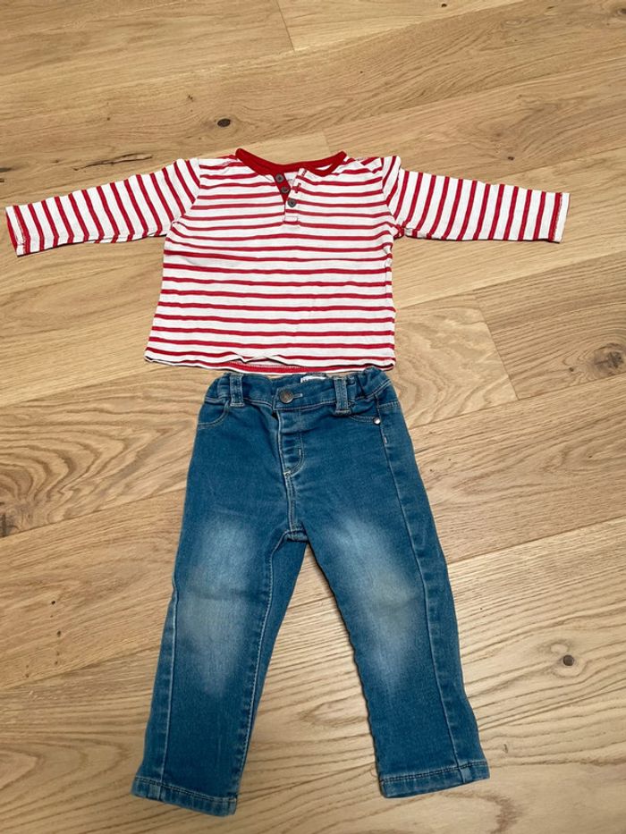 Ensemble mixte 12 mois Jeans et pull fin rayé rouge et blanc #emmaflo88fille12mois #emmaflo88garçon12mois