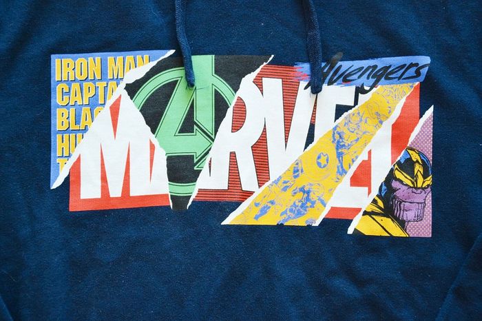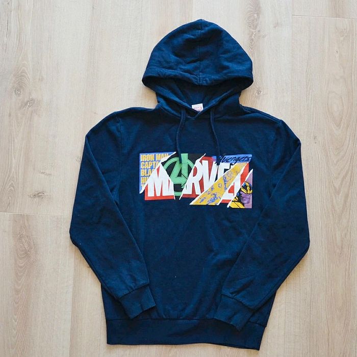 🦸 Pull sweat à capuche de type Hoodie en très bon état et fabriqué en coton. Logo floqué Marvel façon Comics BD par superposition. ----- ⭐ Marque/Gamme : Marvel 🎨 Coloris : Bleu Marine 📏 Taille/Mensurations : XS ----- 📦 Envoi rapide et soigné 💡 Astuce : Jusqu'à -30% en achetant en lot ! -----