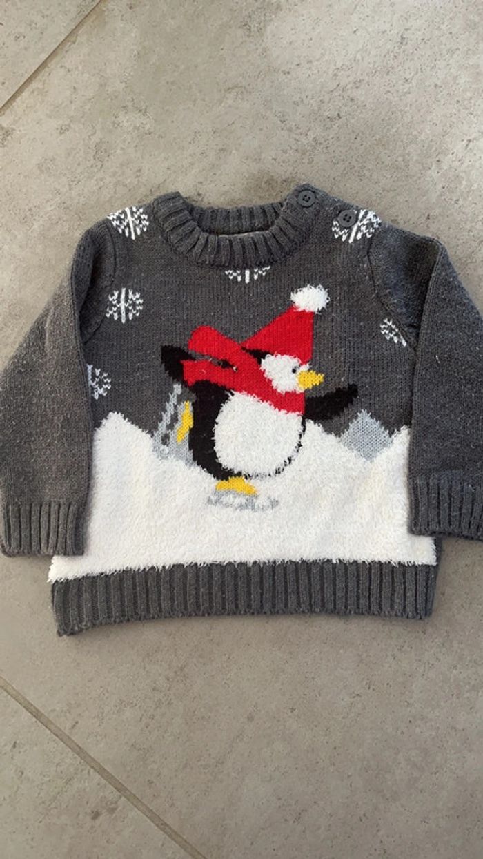 Petit pull de Noël 🎄 Le pompon du bonnet clignote Taille 6 mois