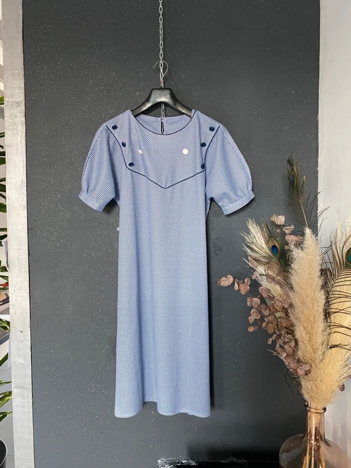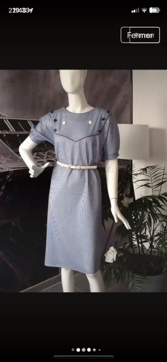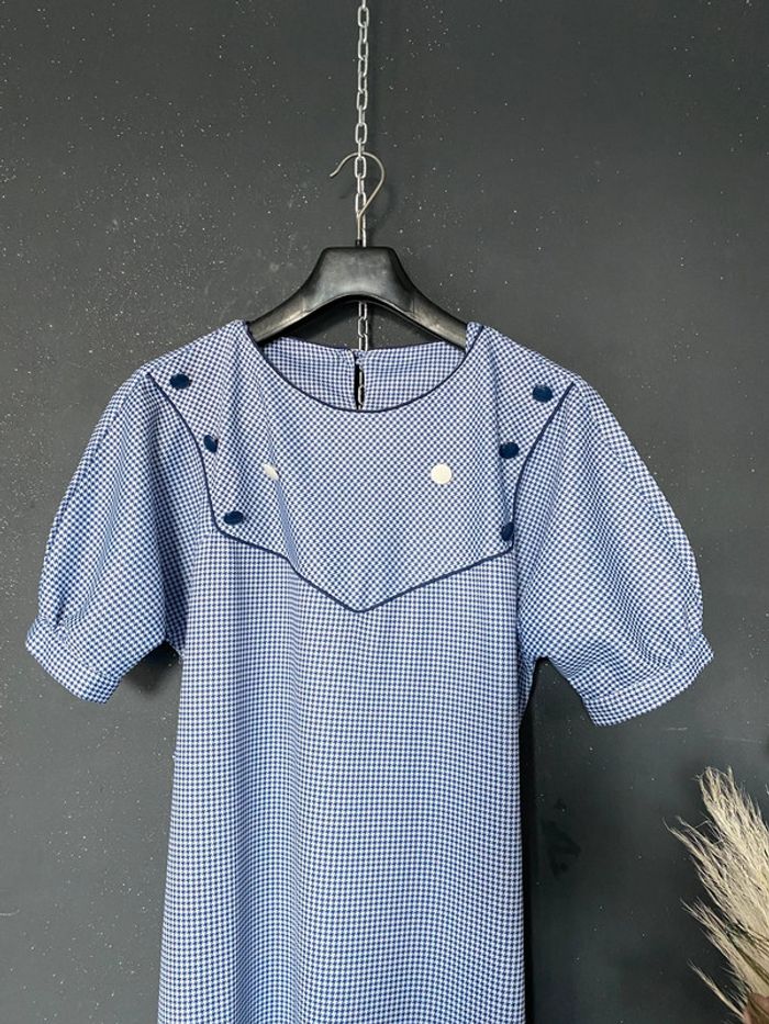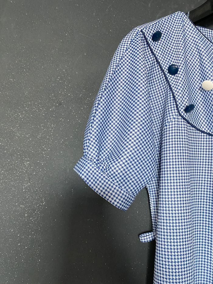 Robe pieds de poule voir mensurations marine blanc plastron à boutons - photo numéro 5