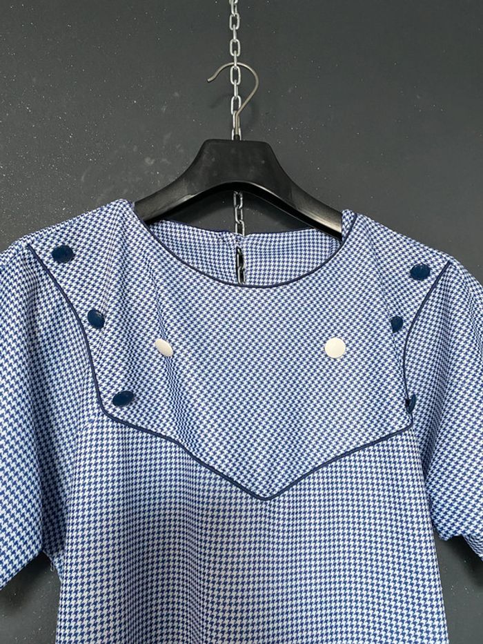 Robe pieds de poule voir mensurations marine blanc plastron à boutons - photo numéro 7