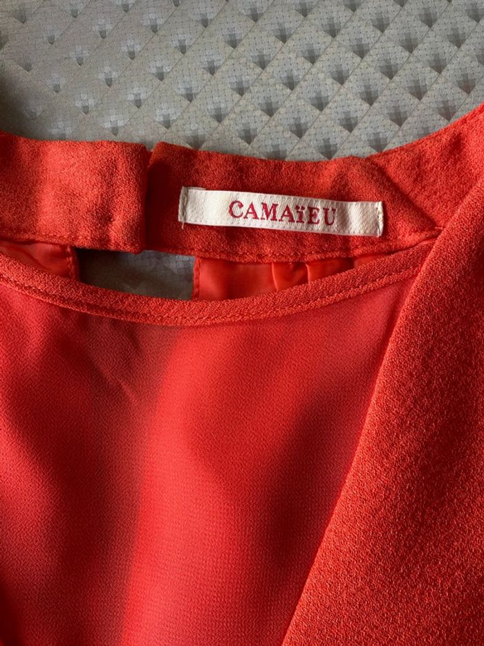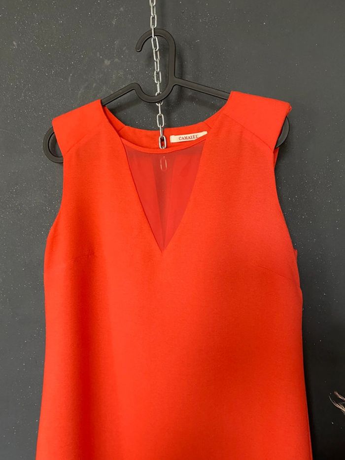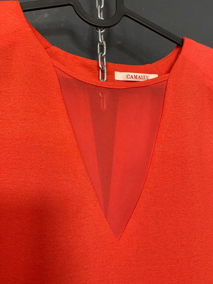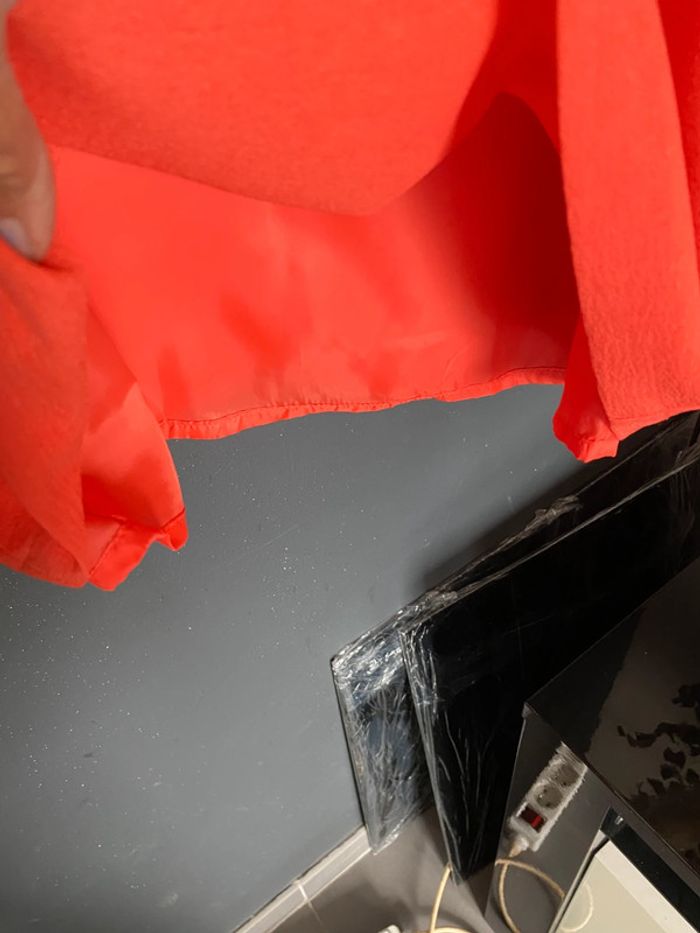 Robe corail V en voile matière style crêpe - photo numéro 4