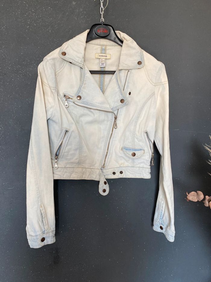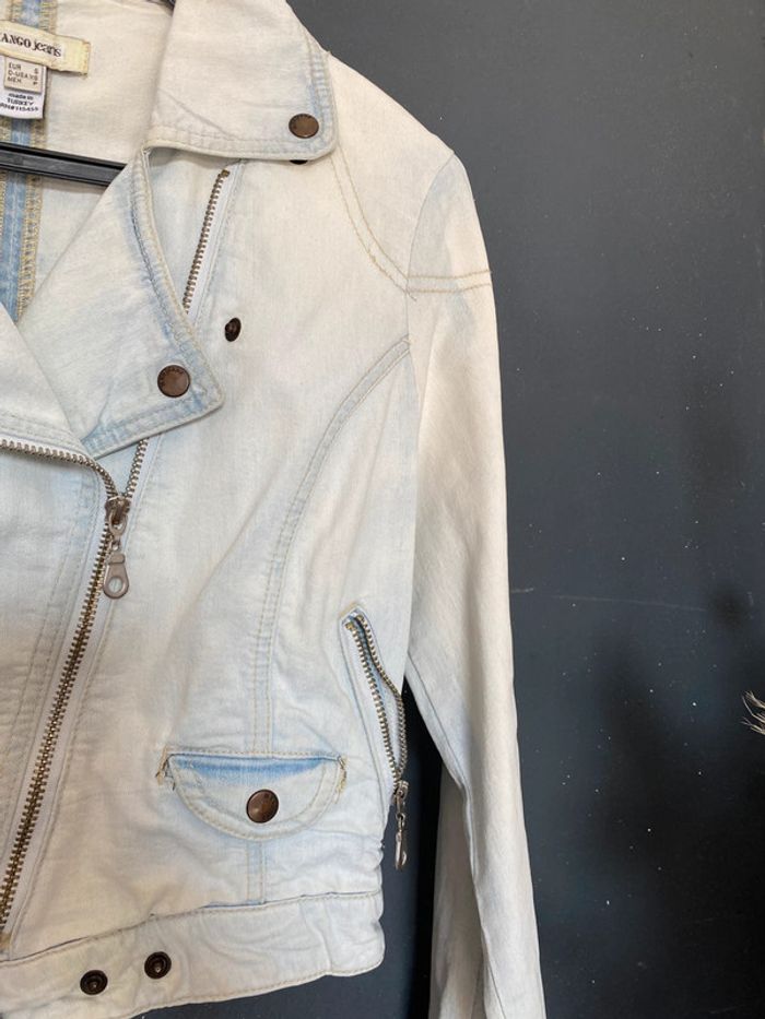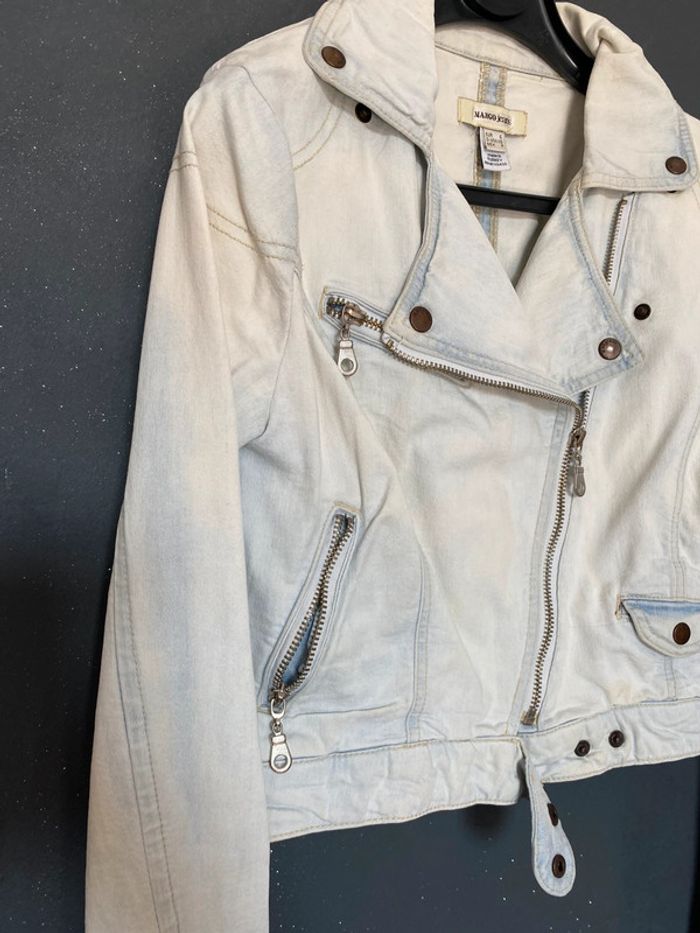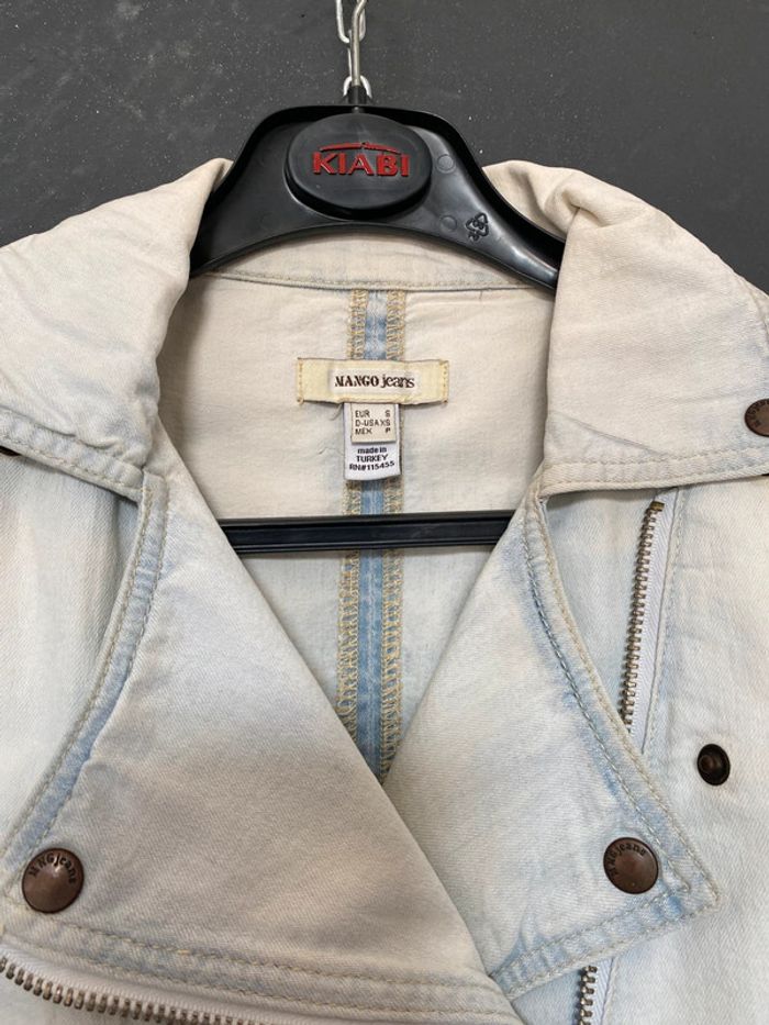 Prix ferme ! Merci Blouson jean’s délavé blanchi avec usure d’origine au col (voir photo) Fermeture éclair en diagonale Poches à zip Hauteur 45 cms Plus d’étiquette pour la matière mais coton #blousonjean #mangojeans #délavé #blanchi #usure #chantalmatejavestes36 #chantalmatejamalo #chantalmateja2025