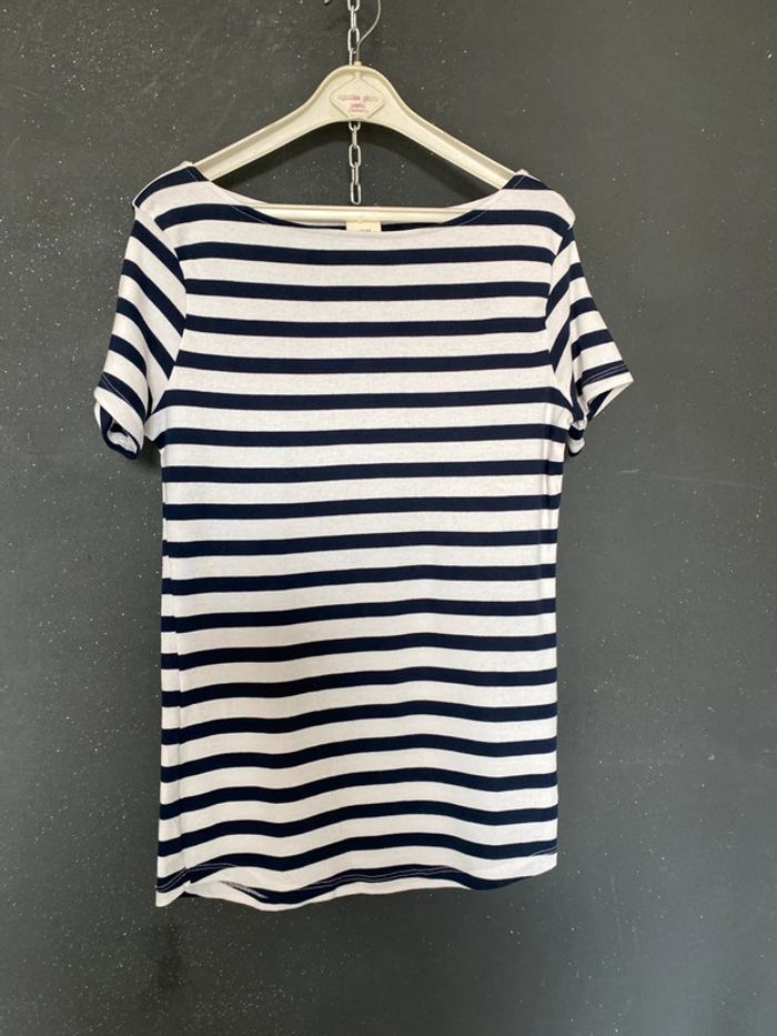 Ter shirt marine et blanc encolure bateau - photo numéro 1