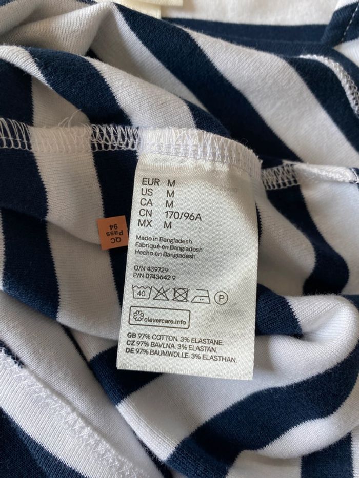 Prix ferme ! TEE shirt rayé marine et blanc Manches courtes Bas légèrement arrondi 97% coton et 3% élasthane Longueur env 62,5 Matière étirable Epaules 36 Aisselles 42 #teeshirtmarinière #teeshirt #marineetblanc #coton #elasthane #hetm #neufsansétiquette #chantalmatejahauts38 #chantalmatejaval #chantalmateja2025