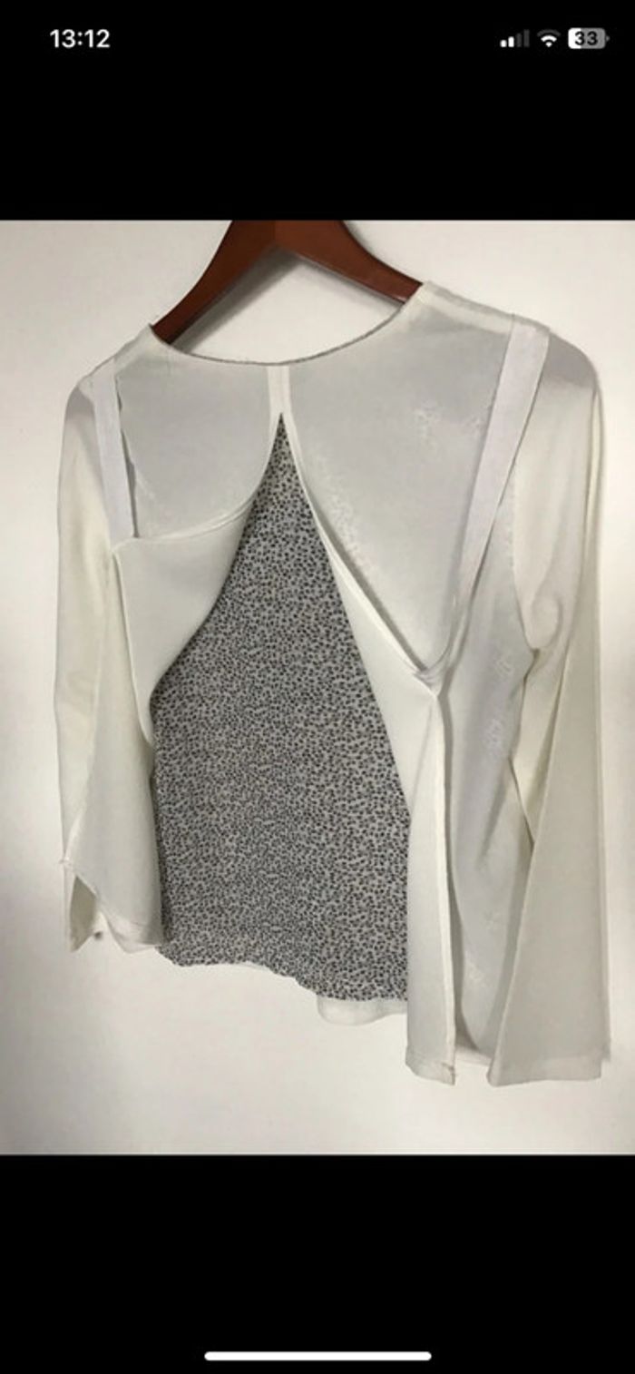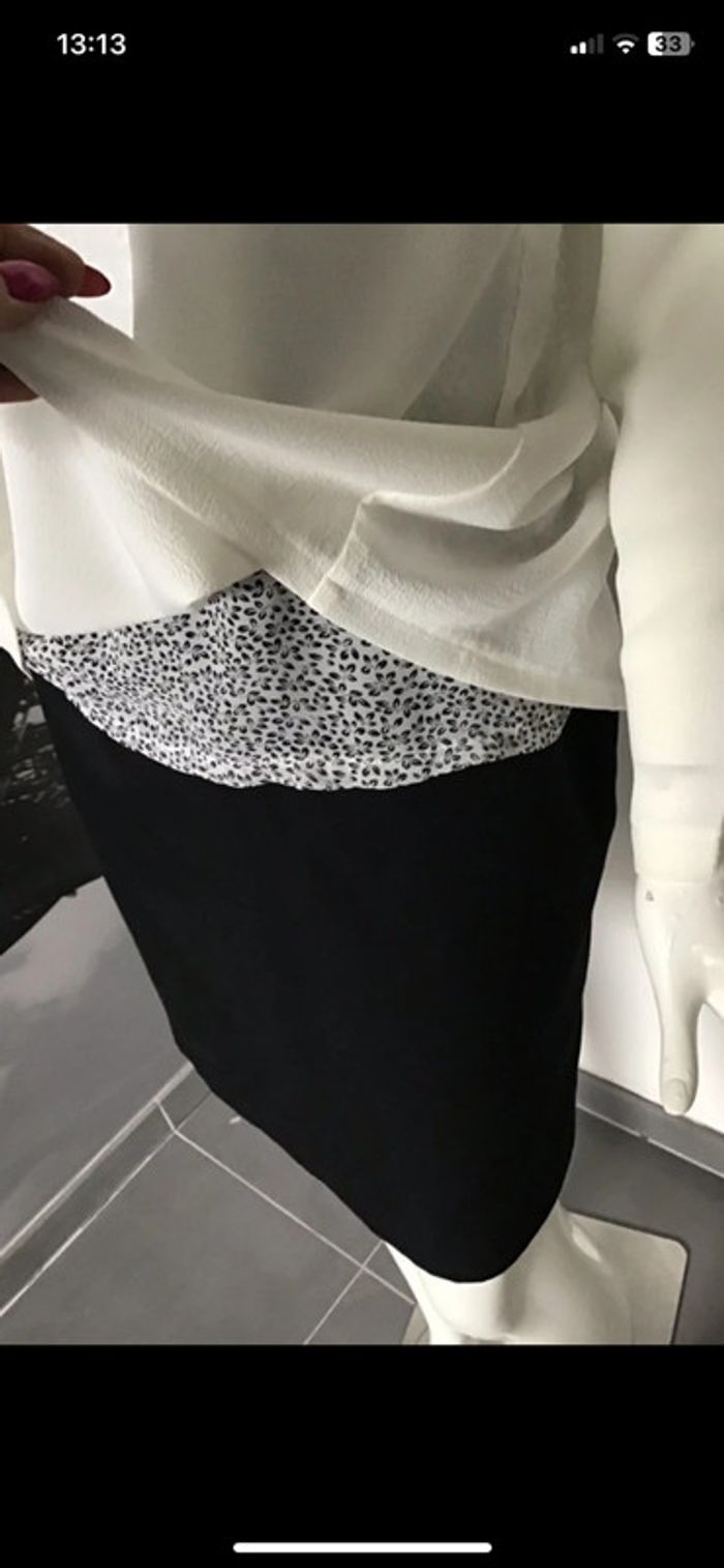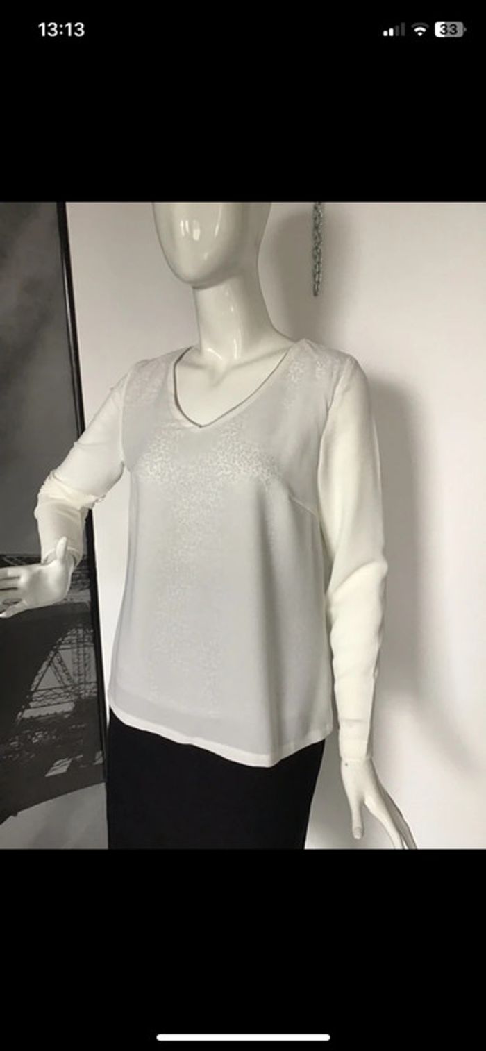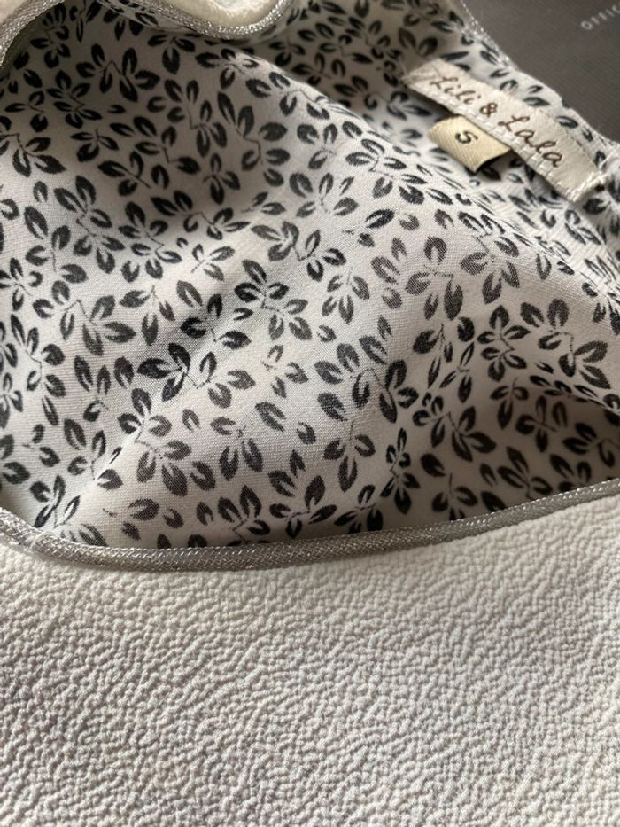 Prix ferme !! Blouse style crêpe liseret argenté à l’encolure Doublée voile avec motifs noirs Dernière photo Plus d’étiquette pour la matière dsl Taille S Epaules de couture à couture 37 Sous les aisselles 47 Pinces de poitrine Longueur 63,5 Longueur des manches 58,5 #blouse #blousedoublee #lilietlala #crêpé #chantalmatejahauts36 #chantalmatejaval #chantalmateja2025