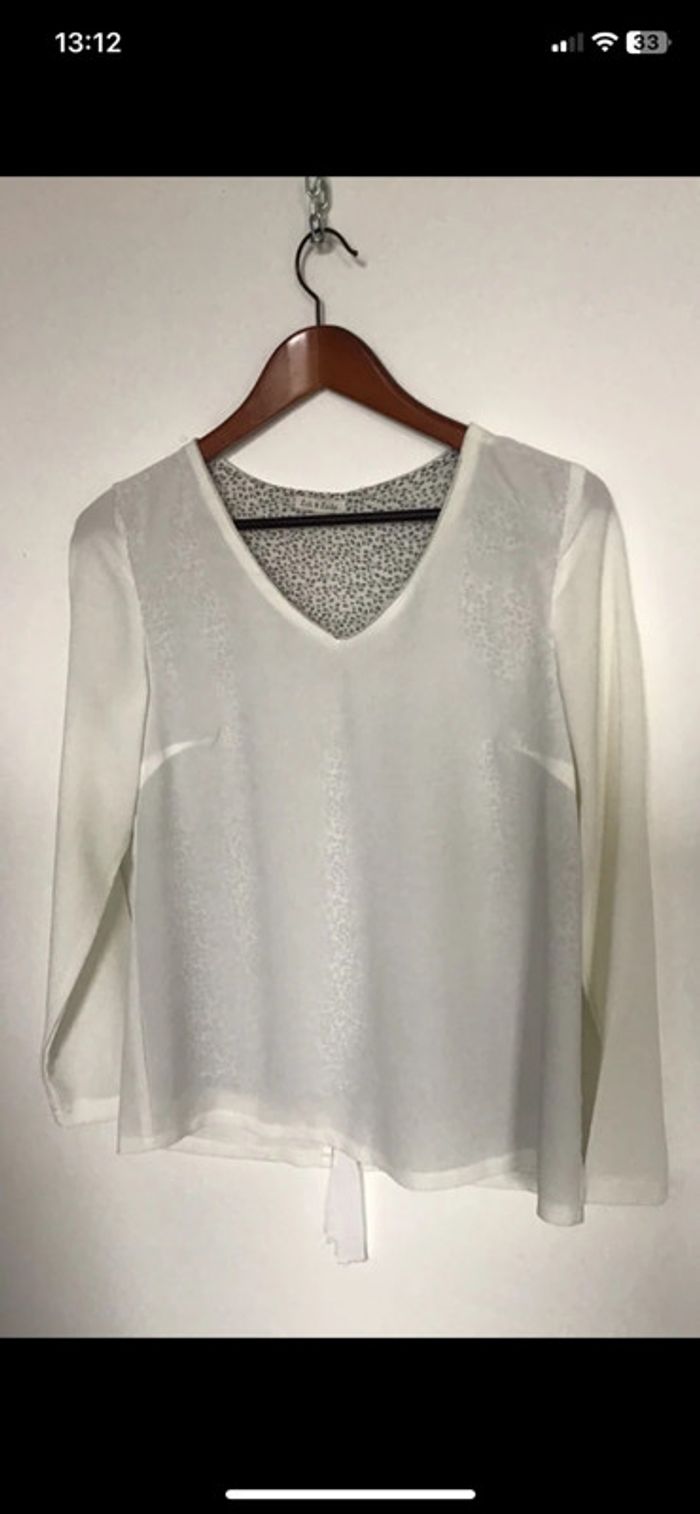 Blouse style crêpe doublée avec noeud dans le dos - photo numéro 1