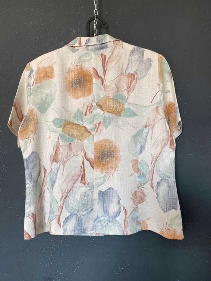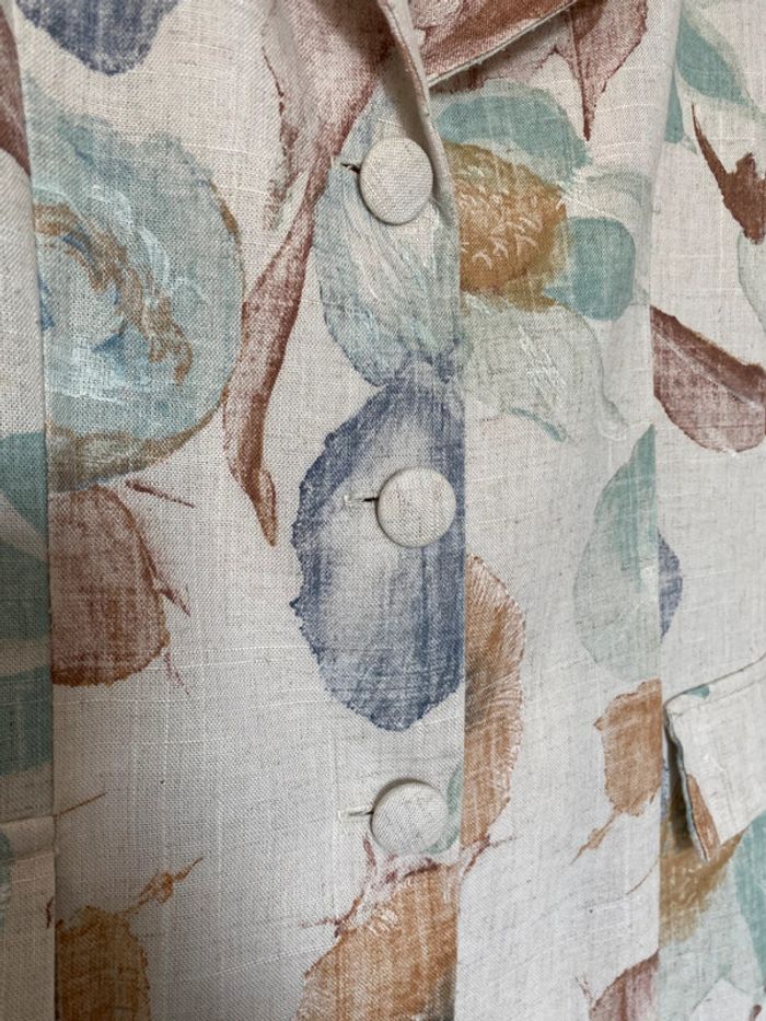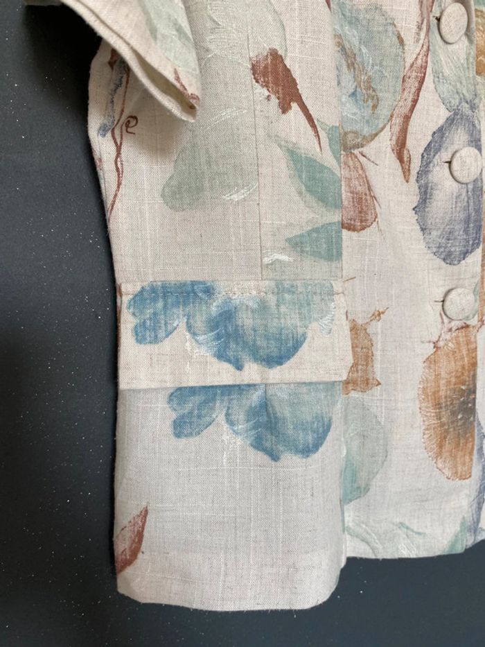 Prix ferme !! Merci Veste légère manches courtes Semble en lin sans certitude Fausses poches devant Étiquette illisible pour la matière comme pour la taille Mensurations Epaules de couture à couture 42,5 avec épaulettes Sous les aisselles 53 Hauteur env 58 Boutons recouverts de tissu Article des années 70/80 donc porté et qq micro bouloches qui partiront au rasoir voir photo #vestevintage #vesteété #manchescourtes #lin #pastel #chantalmatejavestes42 #chantalmatejachame #chantalmateja2025