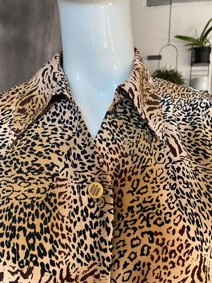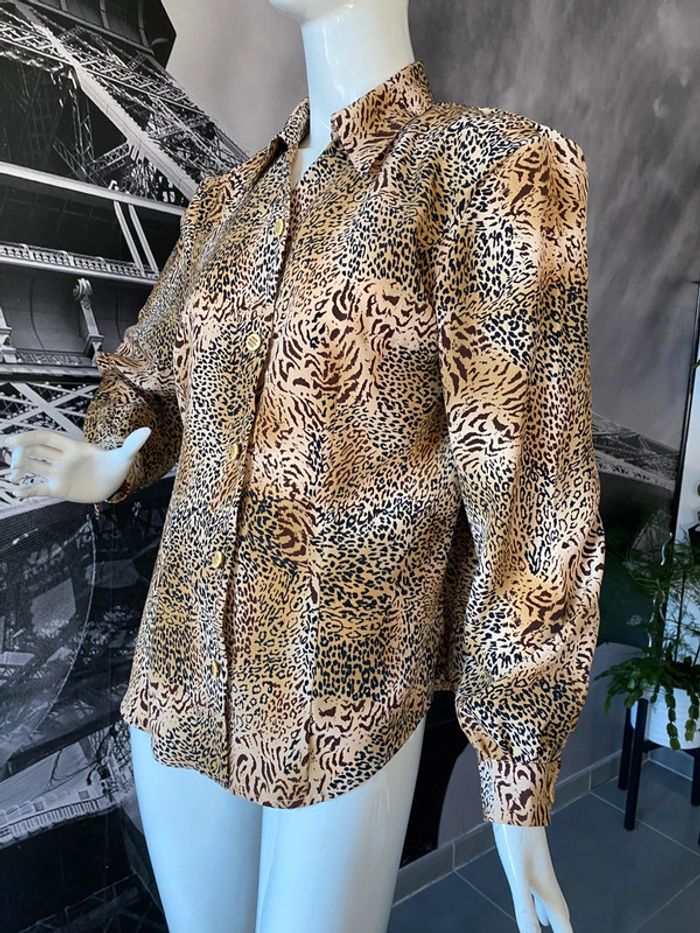 Chemisier à motifs forme arrondie dans le bas avec fente de chaque côté de 6,5 cms environ Col en pointe Boutons originaux Marron beige et noir Polyester Taille damart vintage 44 Merci de vérifier les mensurations Epaules de couture à couture 43,5 Sous les aisselles 53,5 Pinces de poitrine et pinces devant Longueur des manches en partant de la couture de l’épaule 60,3 #chemisiervintage #damart #vintage #chic #tendance #chantalmatejachemisiers42 #chantalmatejachemisiers44 #chantalmatejaval #chantalmateja2025