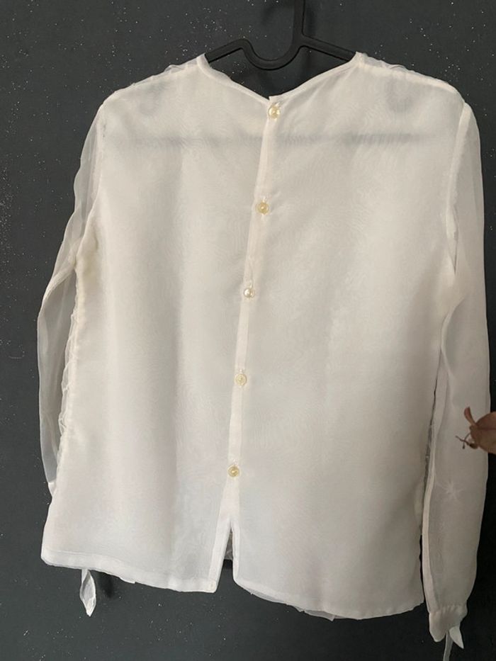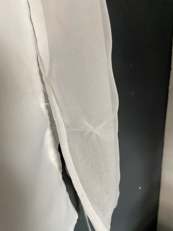 Chemisier en voile double Boutonnage dos Petite rose à l’encolure 1 défaut à la manche droite ou le tissu est pincé Je mets tout de même tbe car vraiment très ancien et bien conservé Plus d’étiquette pour la matière Manches 3/4 à galon à nouer Epaules de couture à couture 37 Sous les aisselles 46,5 Hauteur 57 Bien vérifier les mensurations afin d’éviter toute déception #chemisiervintage #chic #70s #athypique #raffiné #plis #chantalmatejachemisiers36 #chantalmatejachame #chantalmateja2024