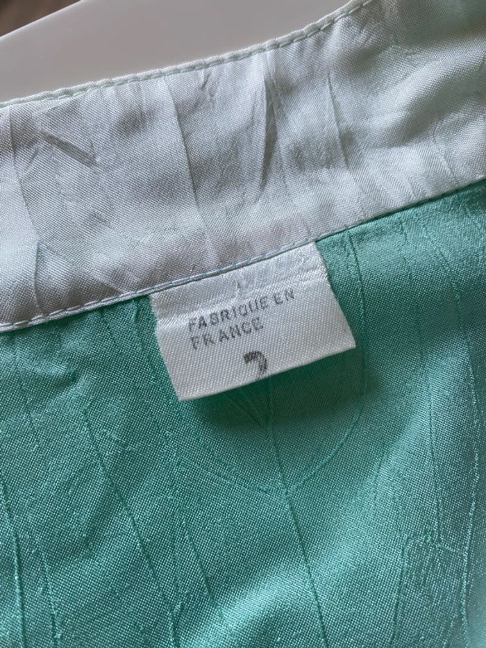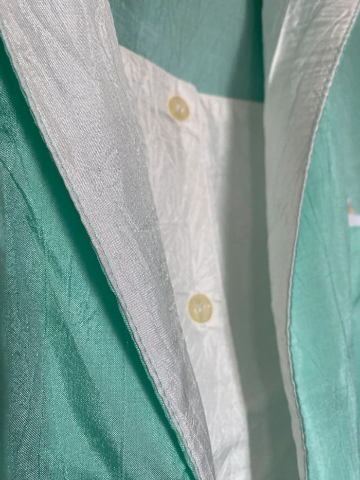 Haut blousant des années 80 Matière très soyeuse avec des nervures dans la trame Taille 2 donc 38/40 mais pourrait convenir à 42 Épaules tombantes 48 cms de couture à couture Sous les aisselles 59 cms Vert pastel le bas est en maille tricot #hautloose #hautvintage #80s #blousonléger #vertpastel #satiné #chantalmatejahauts40 #chantalmatejachame #chantalmateja2025