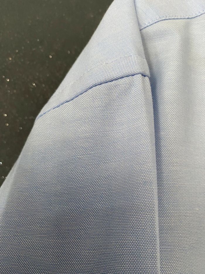 Chemise neuve (Lavée mais non portée car trop grande) Trame joliment travaillée ciel/blanc Broderie au dessus de la poche Epaules de couture à couture 51 Sous les aisselles 55 Forme droite Polyester et coton #chemisehomme #chemiseneuve #russell #russellcollection #chantalmatejachemisehommem #chantalmatejachame #chantalmateja2025