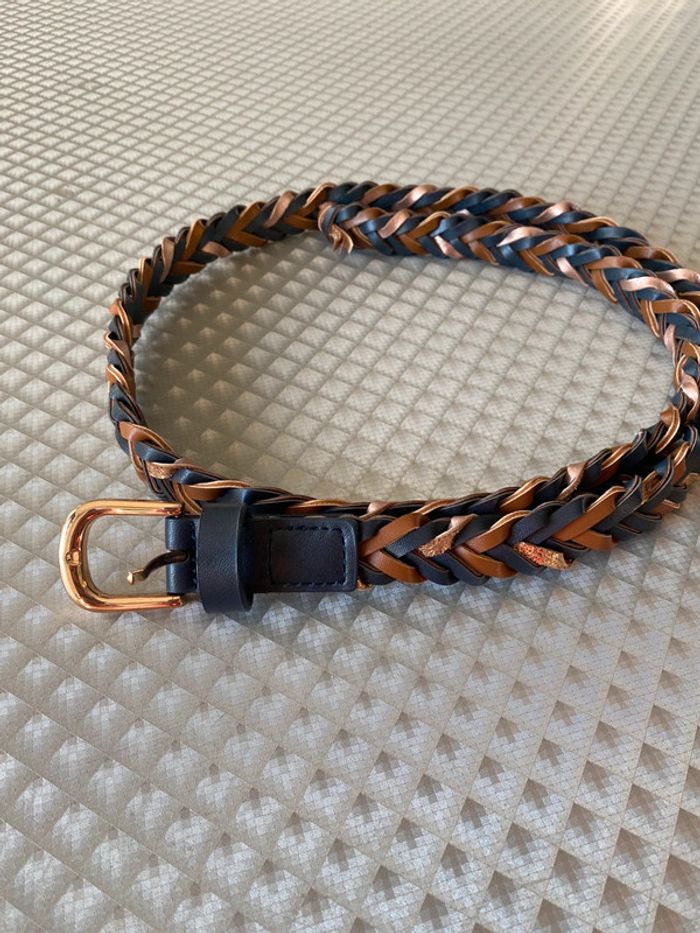 Ceinture tressée marron marine et mordoré - photo numéro 3