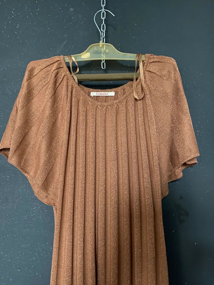 Top long 36/38 cuivré pailleté manches amples - photo numéro 4