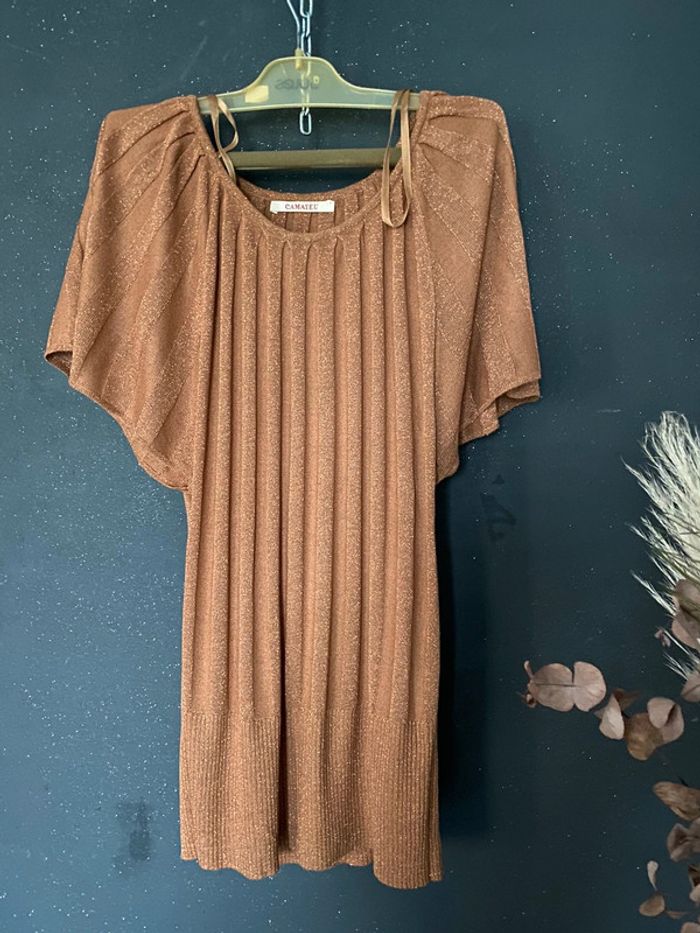 Top long 36/38 cuivré pailleté manches amples - photo numéro 1