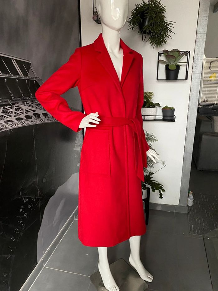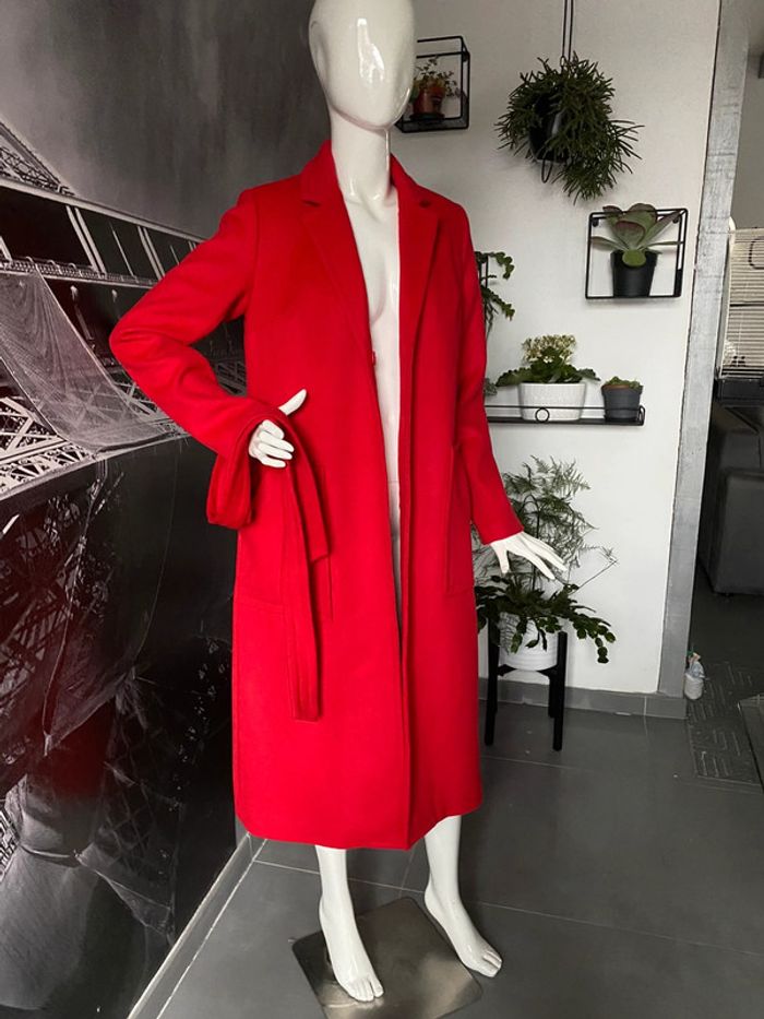 Manteau long rouge 30% laine fermeture par pression fente derrière - photo numéro 1