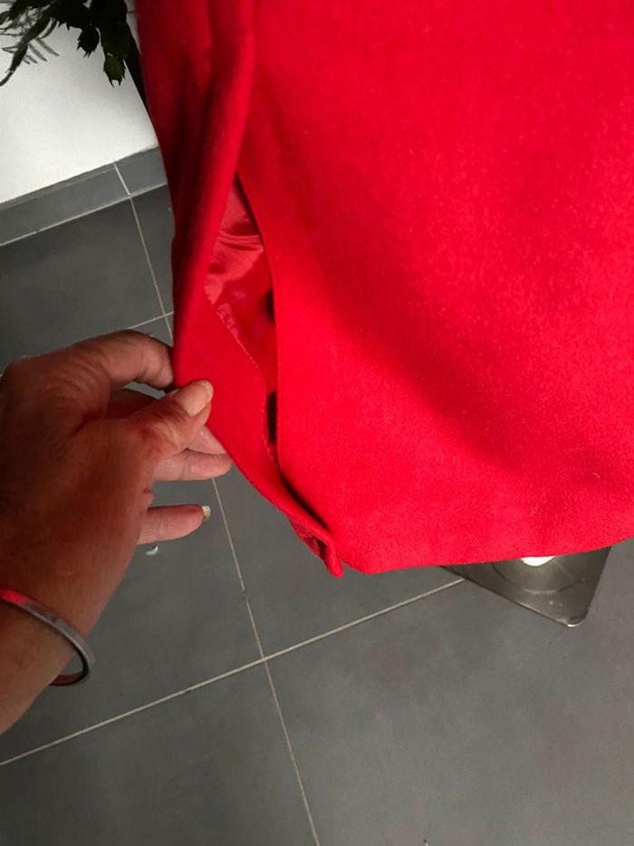 Manteau long rouge 30% laine fermeture par pression fente derrière